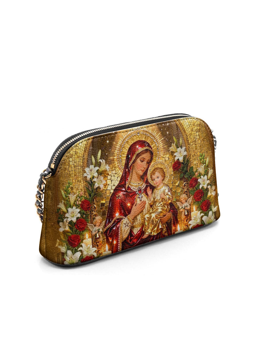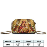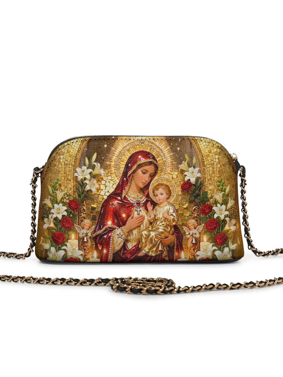 Designed with grace and intention, the Catholight Crossbody Bag is a quiet expression of faith and elegance. Its compact form, gold-accented chain strap, and symbolic artwork make it a meaningful companion for both daily life and sacred moments.