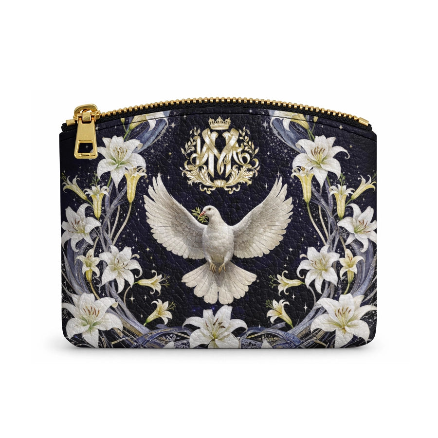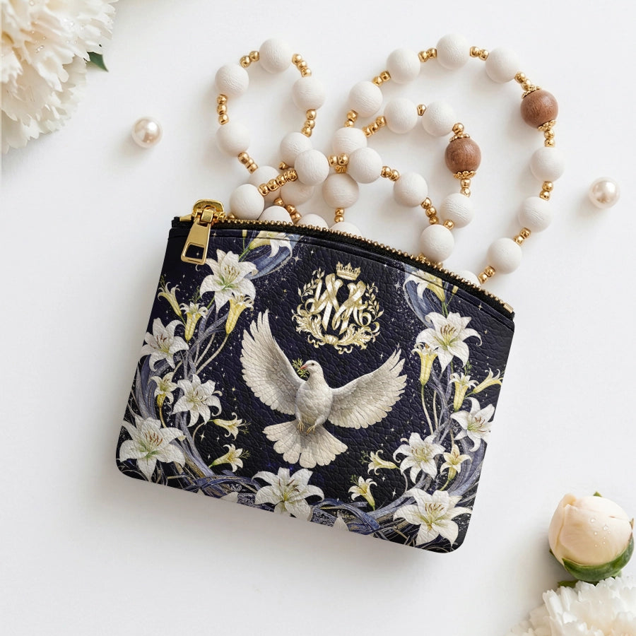 Catholight The Holy Spirit and Lily Devotional Leather Rosary Pouch