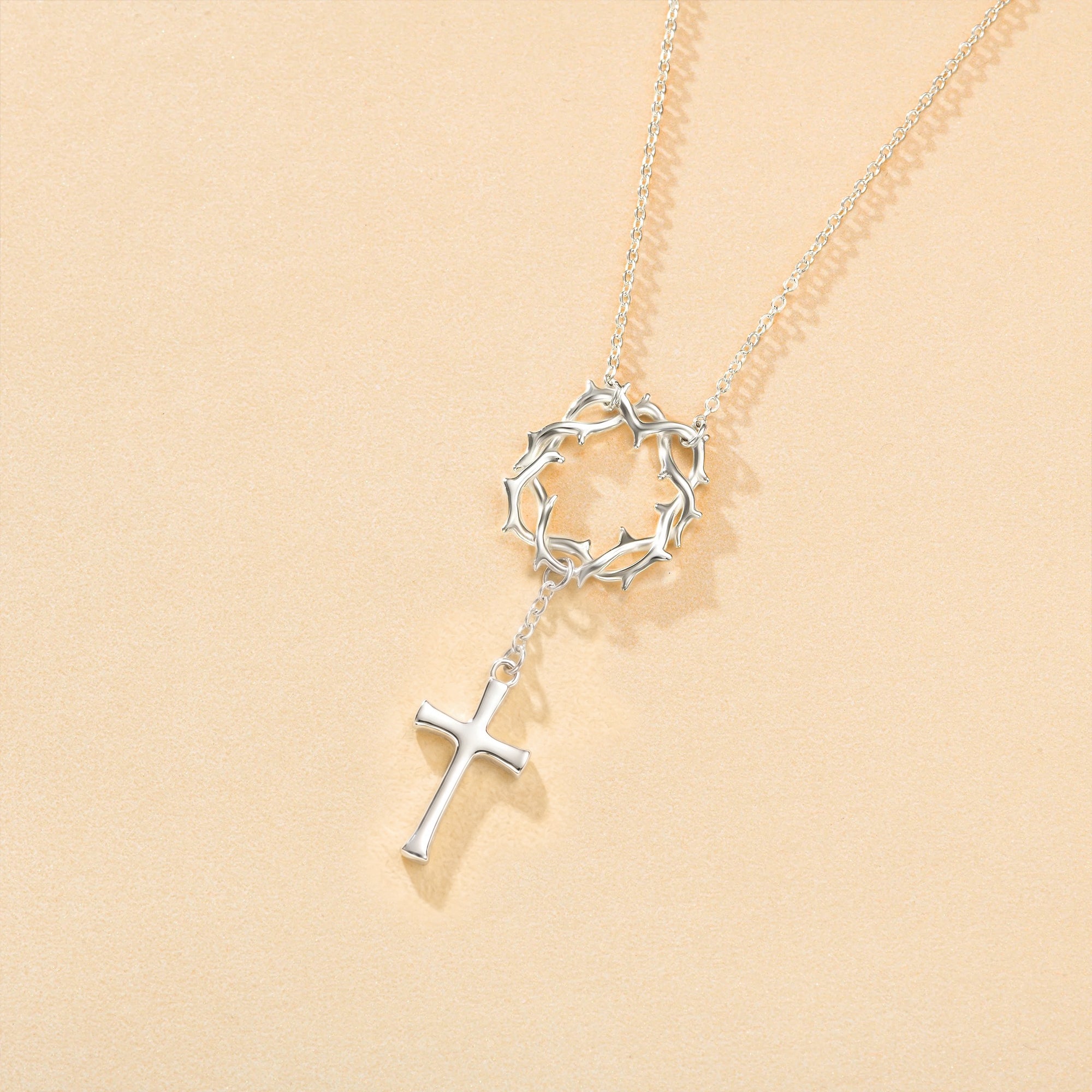 Catholight Crown of Thorns Cross Necklace in Sterling Silver