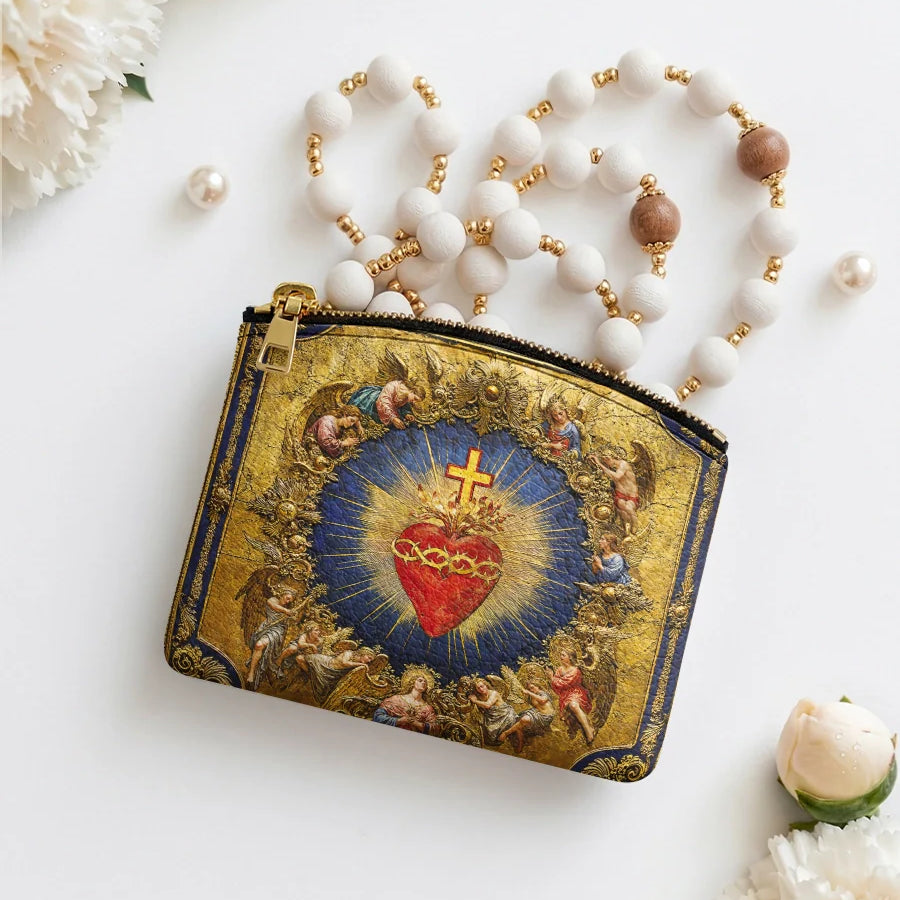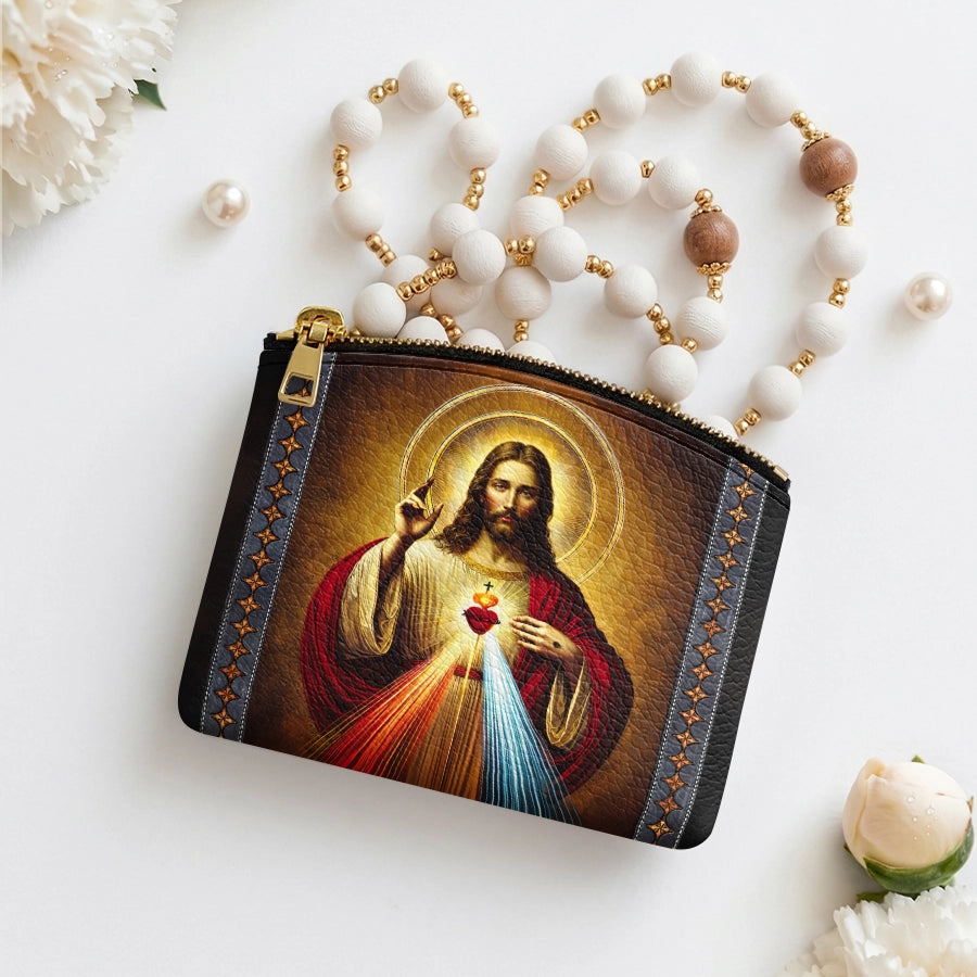 Catholight Sacred Heart of Divine Love Leather Rosary Pouch