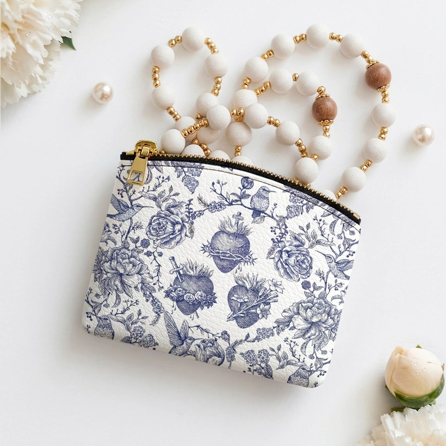 Catholight Sacred Elegance: Blue and White Devotion Leather Rosary Pouch