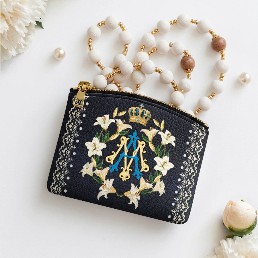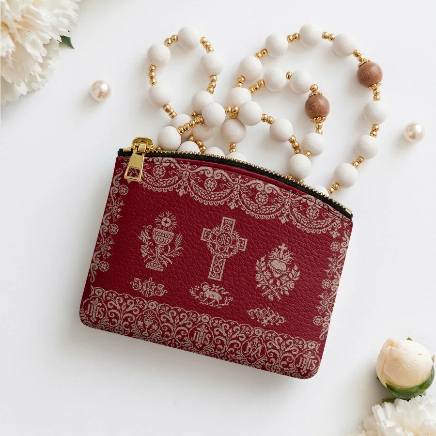 Catholight The Ave Maria Pattern Leather Rosary Pouch