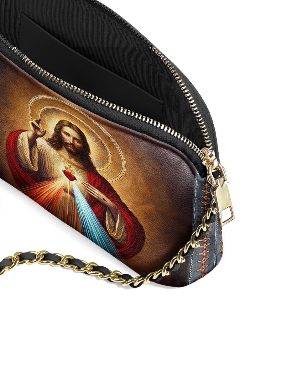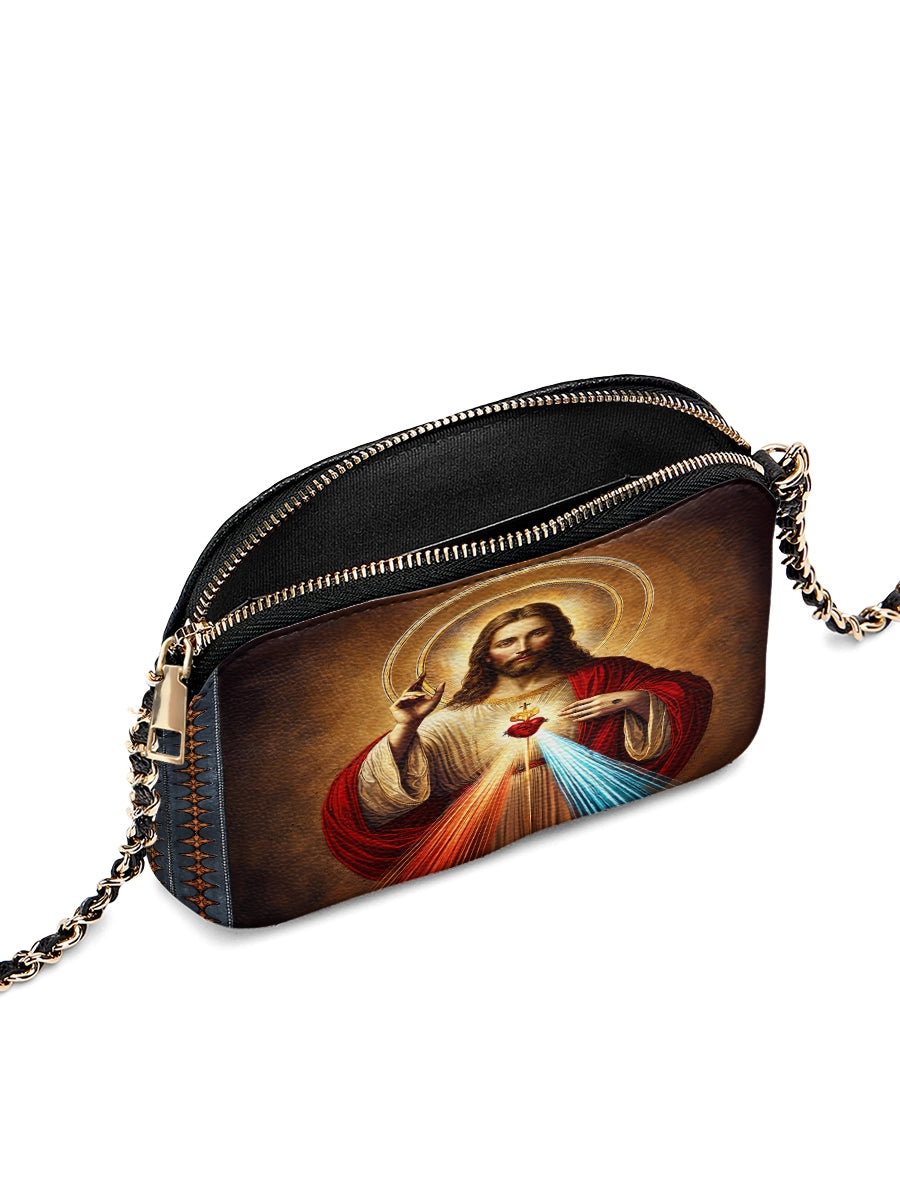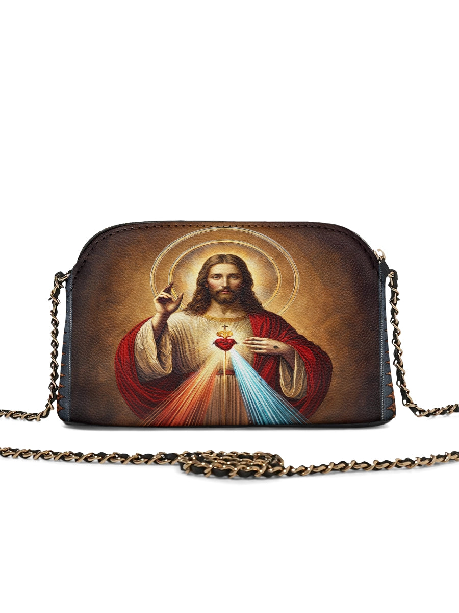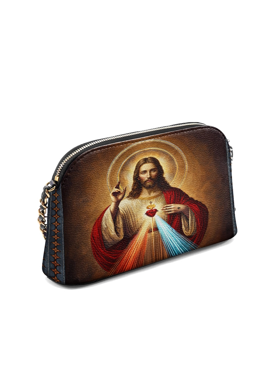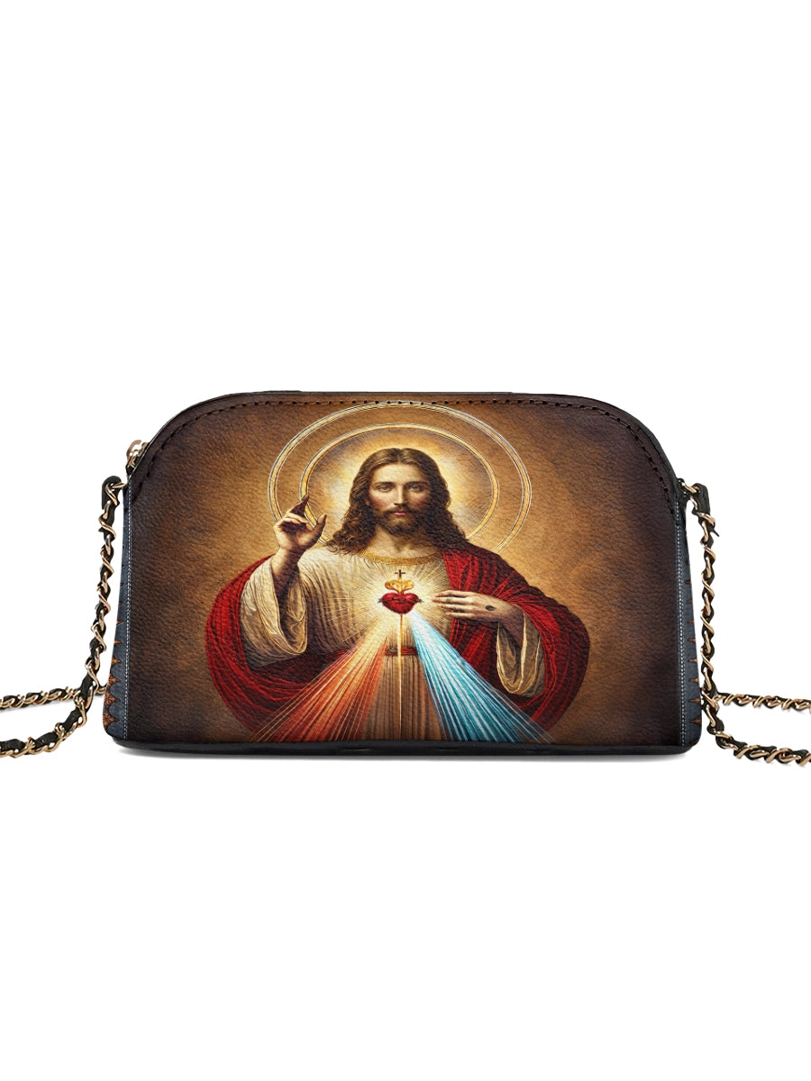 Designed with grace and intention, the Catholight Crossbody Bag is a quiet expression of faith and elegance. Its compact form, gold-accented chain strap, and symbolic artwork make it a meaningful companion for both daily life and sacred moments.