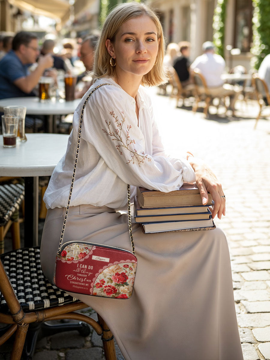 Catholight Blooming With Faith Personalized Leather Crossbody Bag