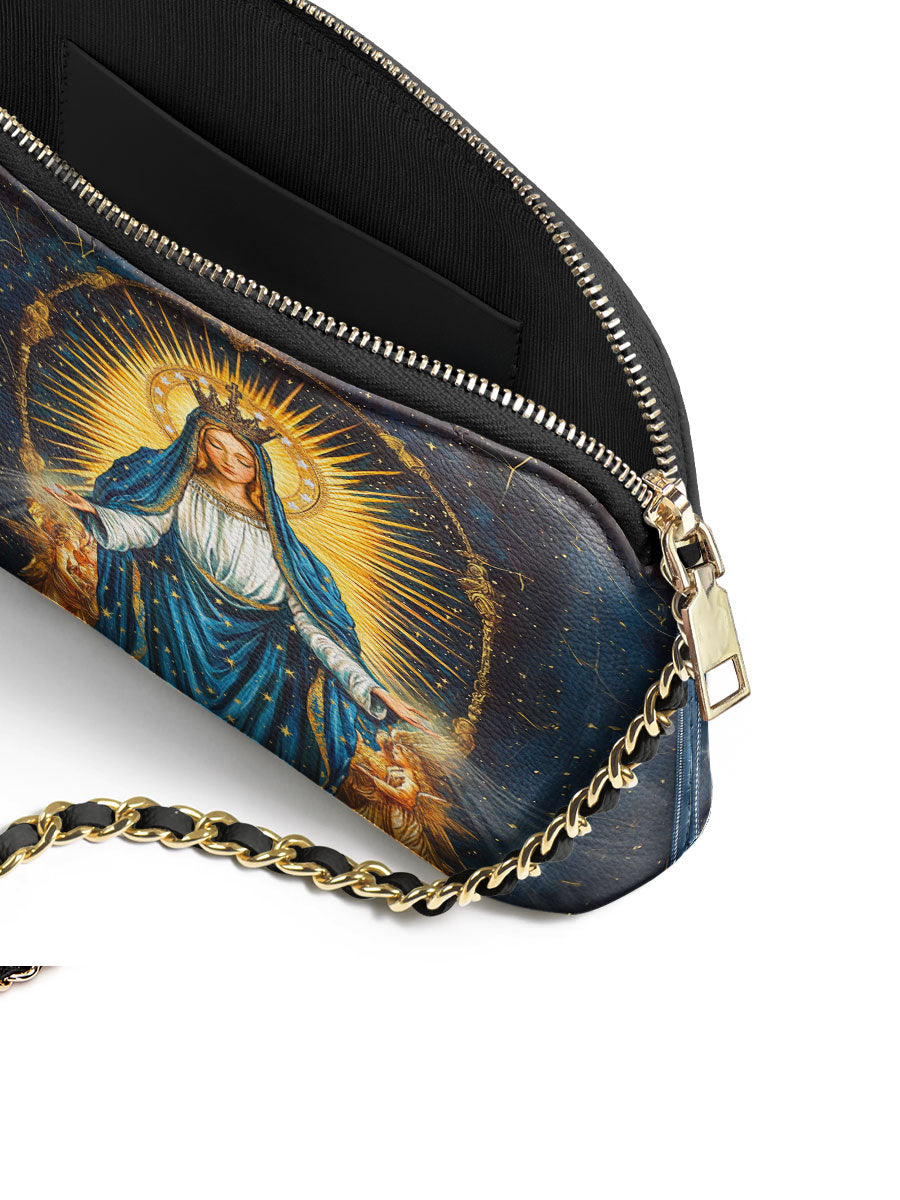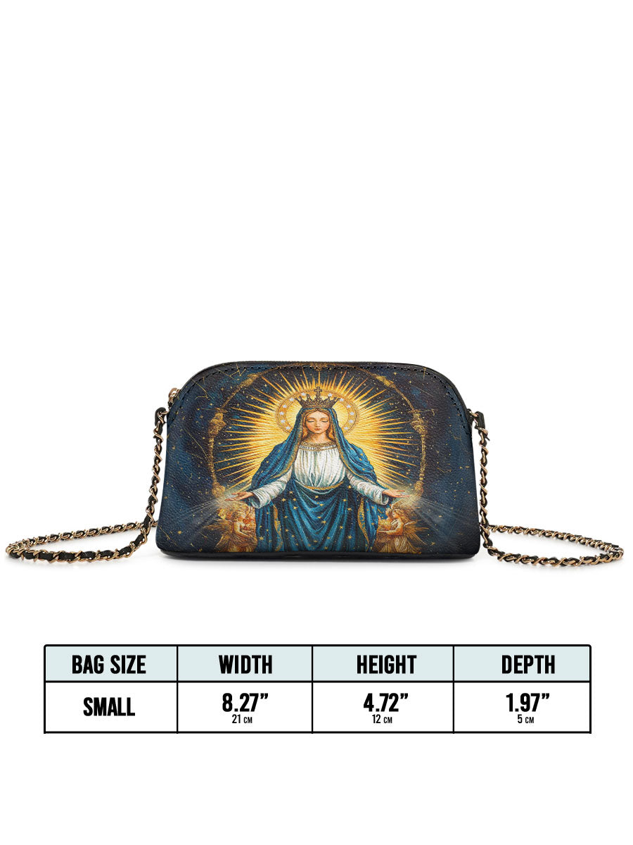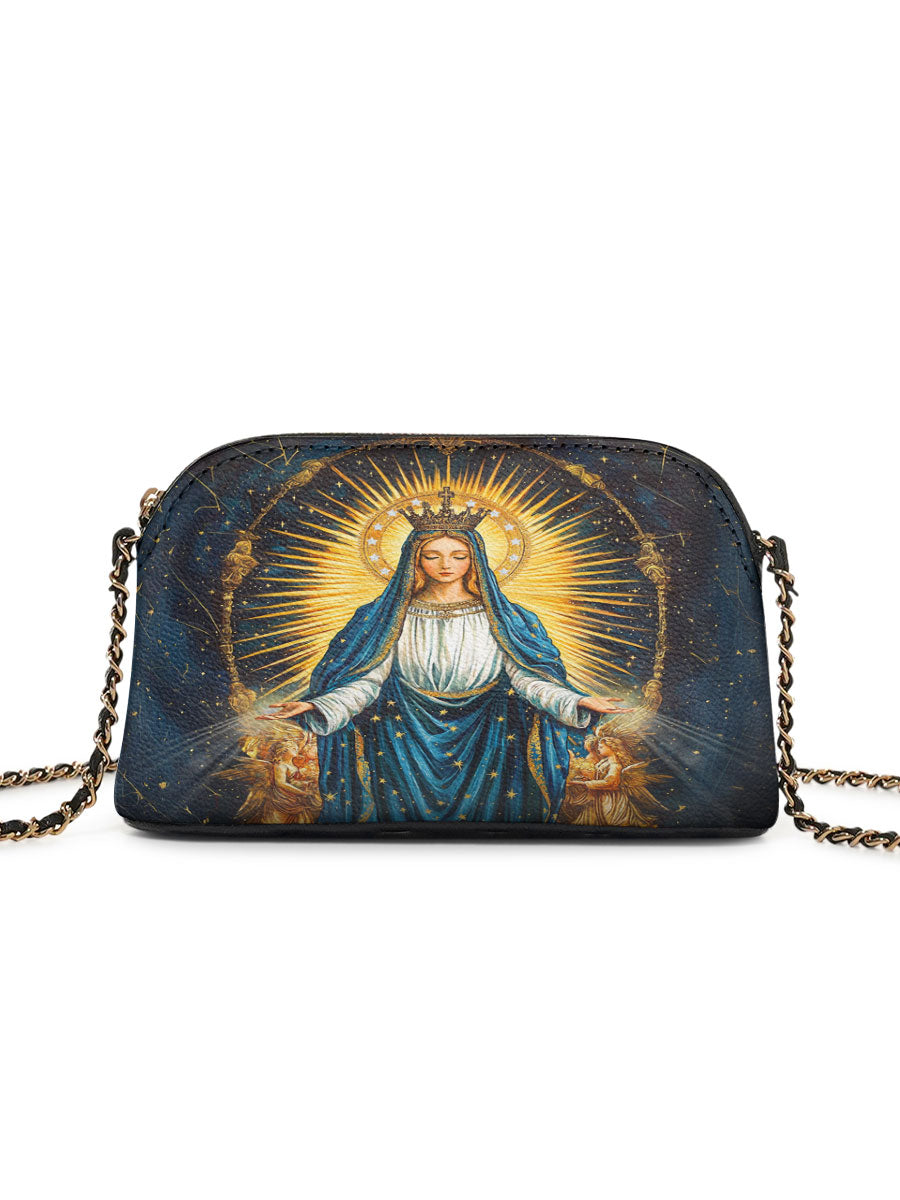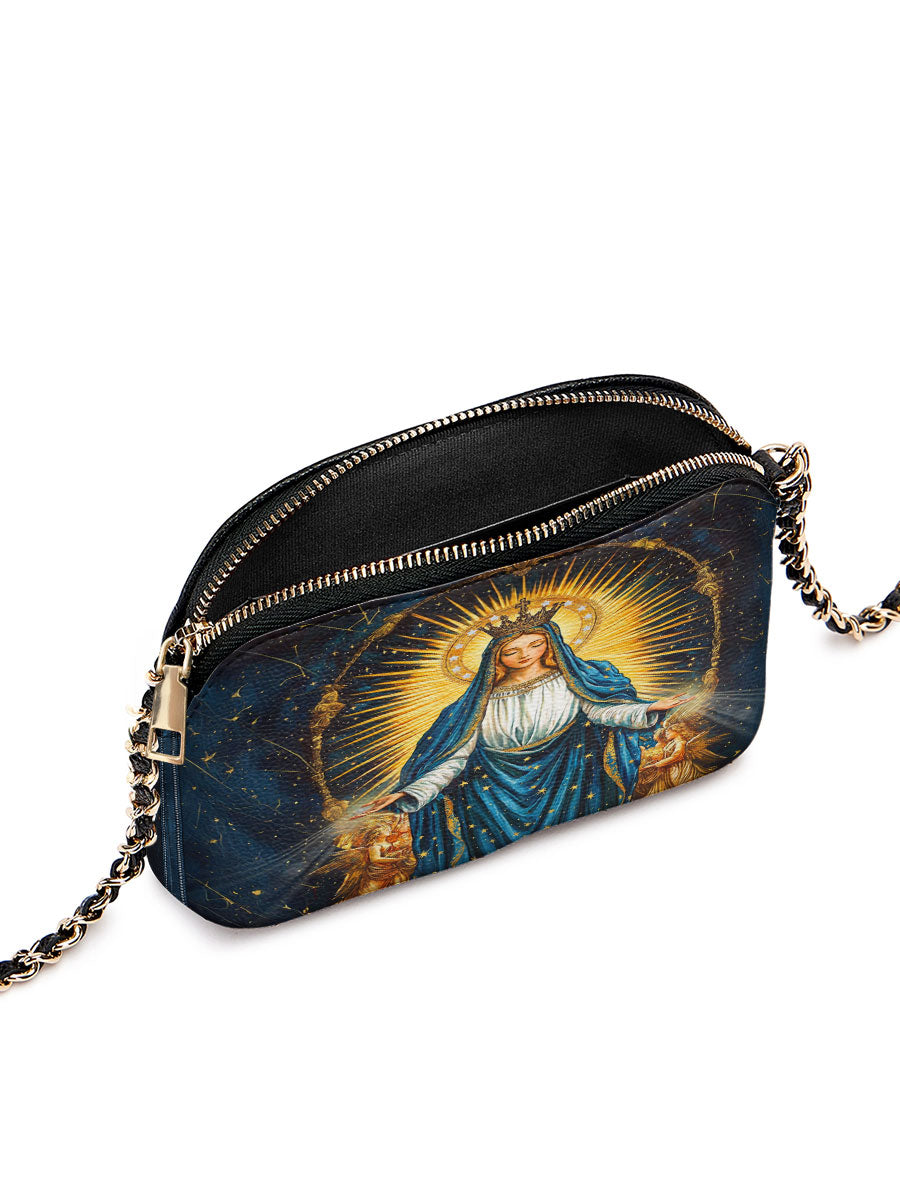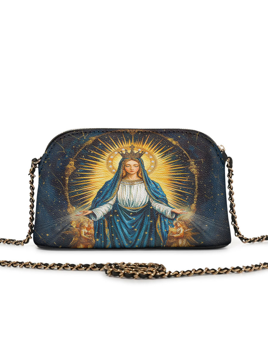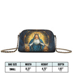 Designed with grace and intention, the Catholight Crossbody Bag is a quiet expression of faith and elegance. Its compact form, gold-accented chain strap, and symbolic artwork make it a meaningful companion for both daily life and sacred moments.