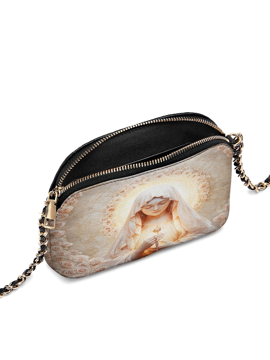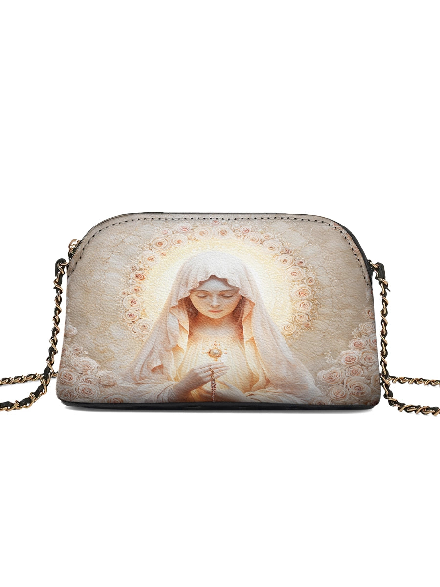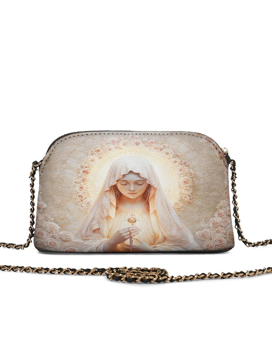 Designed with grace and intention, the Catholight Crossbody Bag is a quiet expression of faith and elegance. Its compact form, gold-accented chain strap, and symbolic artwork make it a meaningful companion for both daily life and sacred moments.