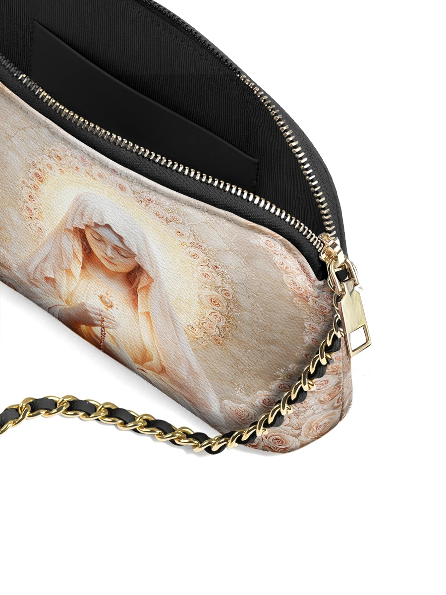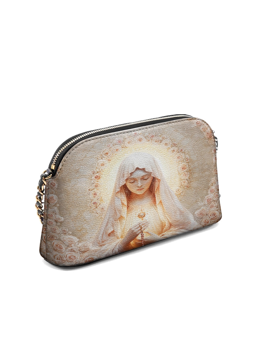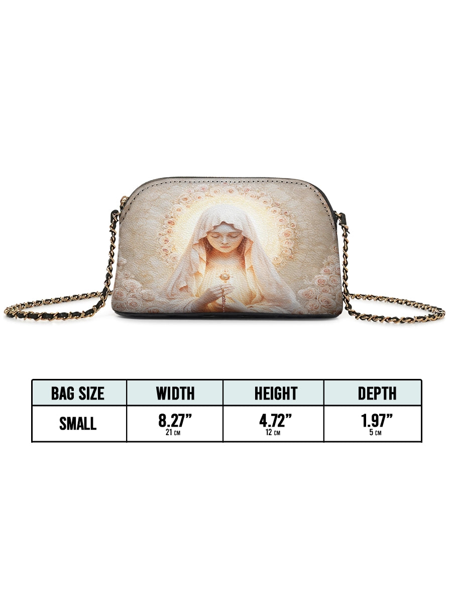 Designed with grace and intention, the Catholight Crossbody Bag is a quiet expression of faith and elegance. Its compact form, gold-accented chain strap, and symbolic artwork make it a meaningful companion for both daily life and sacred moments.
