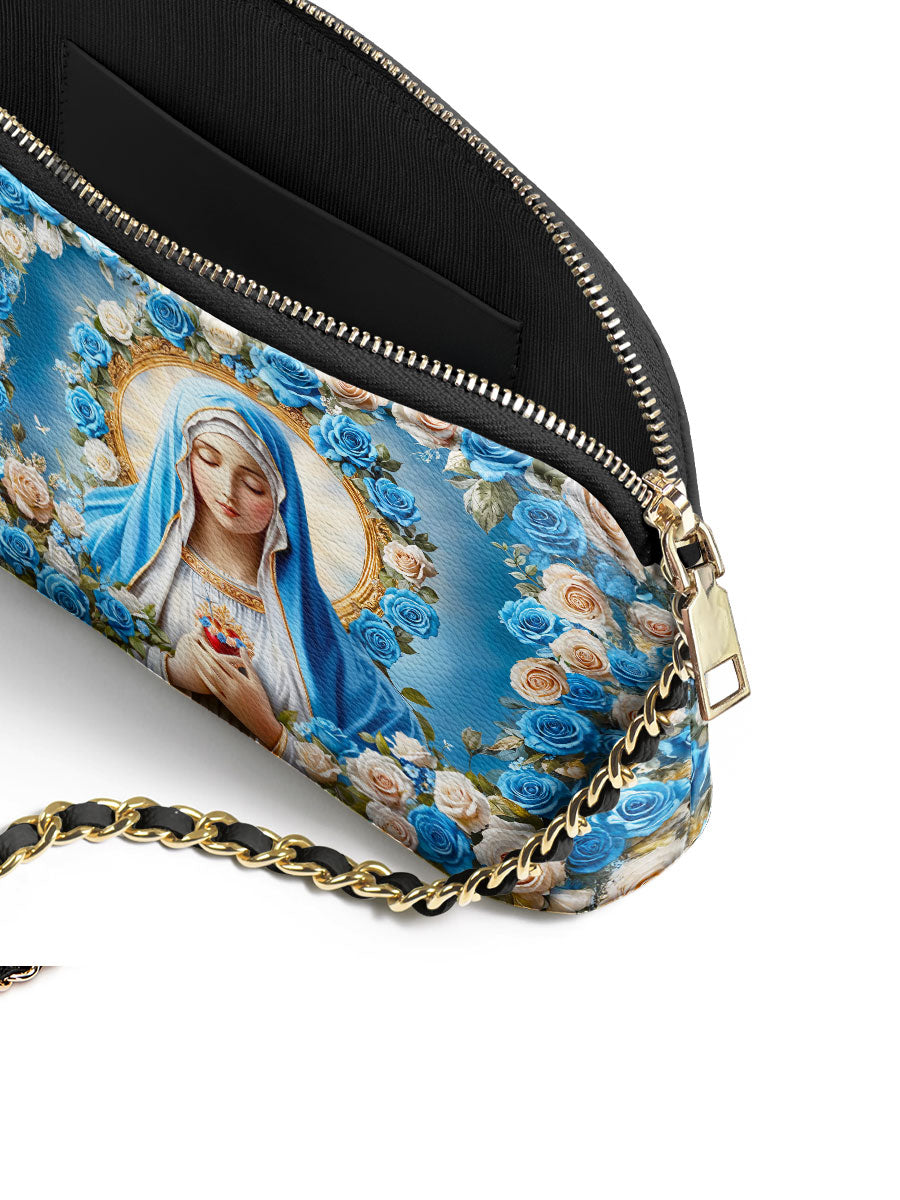 Designed with grace and intention, the Catholight Crossbody Bag is a quiet expression of faith and elegance. Its compact form, gold-accented chain strap, and symbolic artwork make it a meaningful companion for both daily life and sacred moments.
