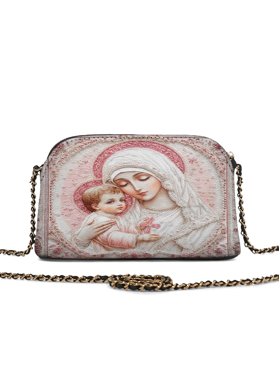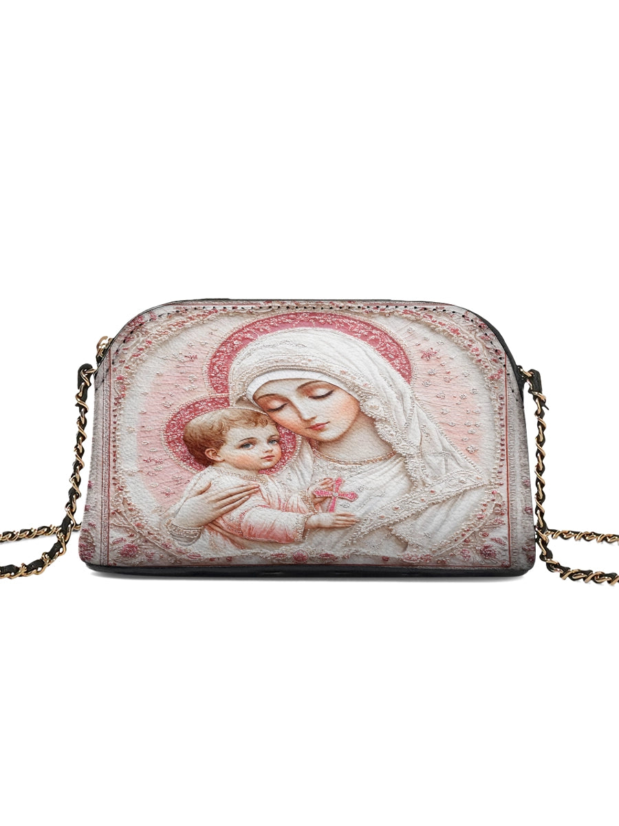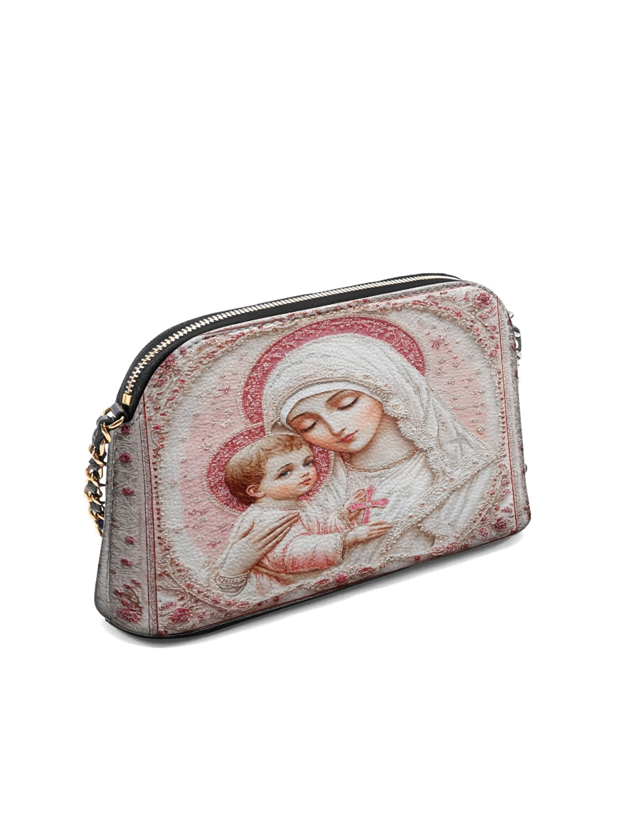 Catholight Sacred Serenity: The Madonna’s Tender Embrace Leather Crossbody Bag