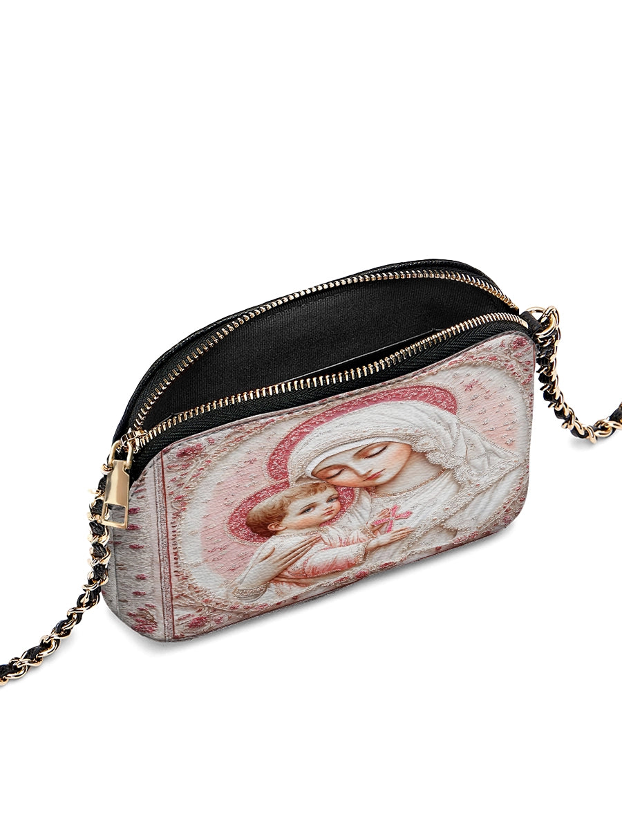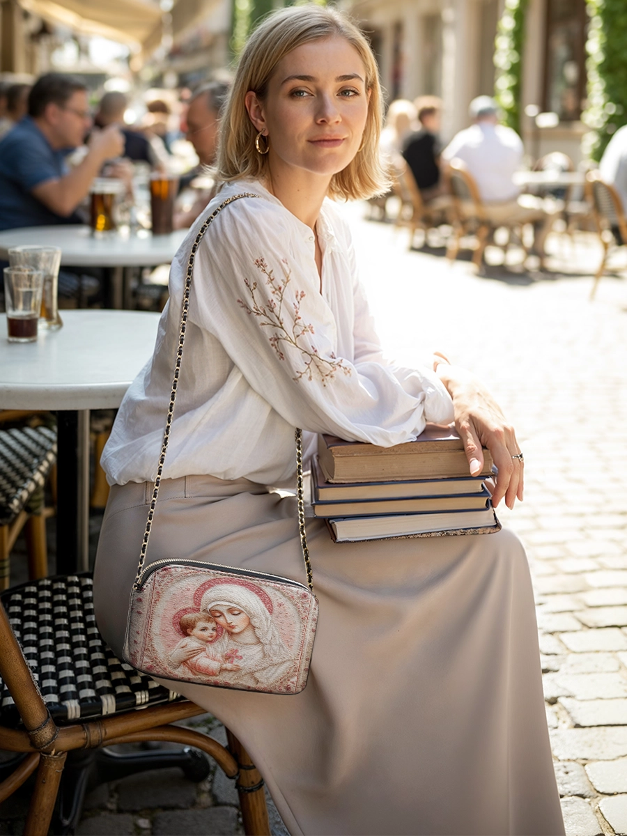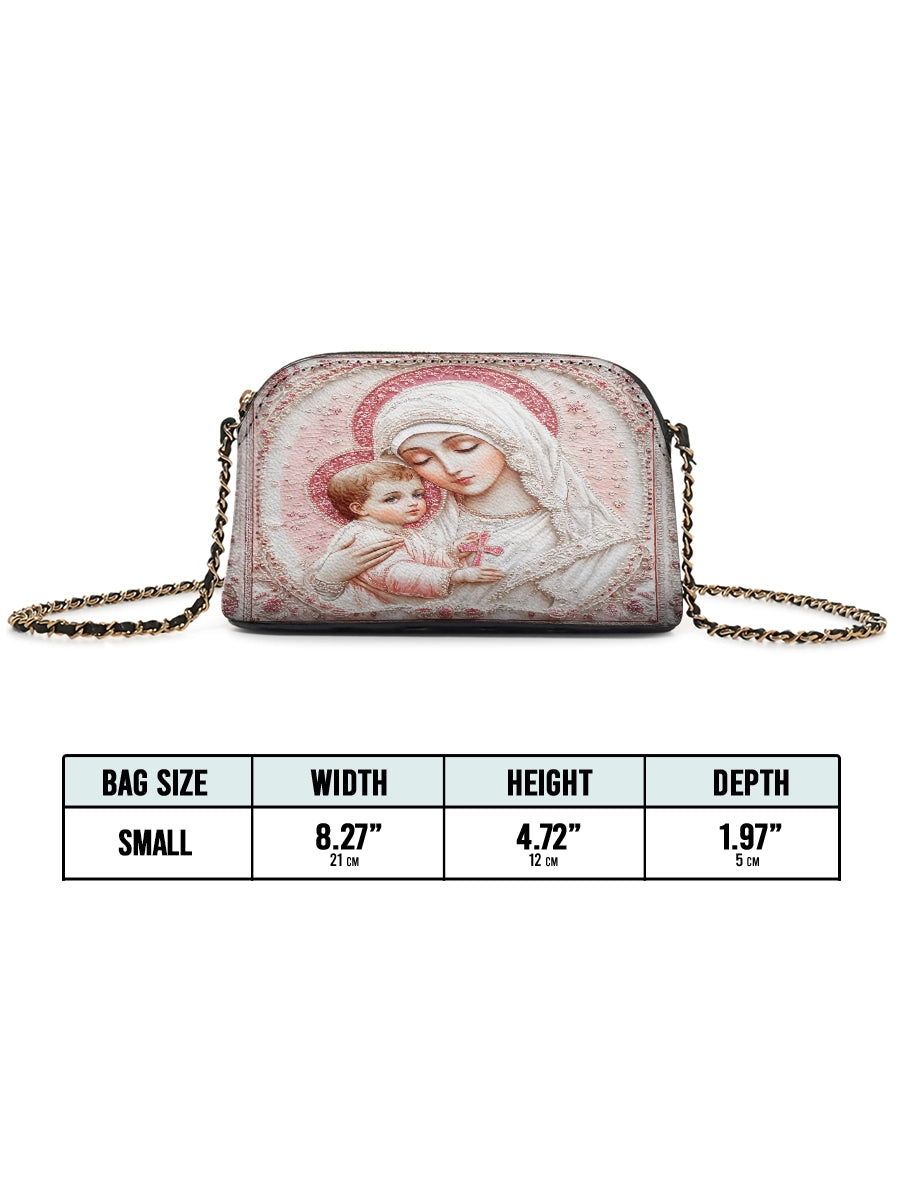 Catholight Sacred Serenity: The Madonna’s Tender Embrace Leather Crossbody Bag