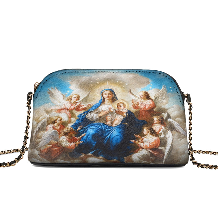 Catholight Sacred Serenity: The Madonna’s Tender Embrace Leather Crossbody Bag
