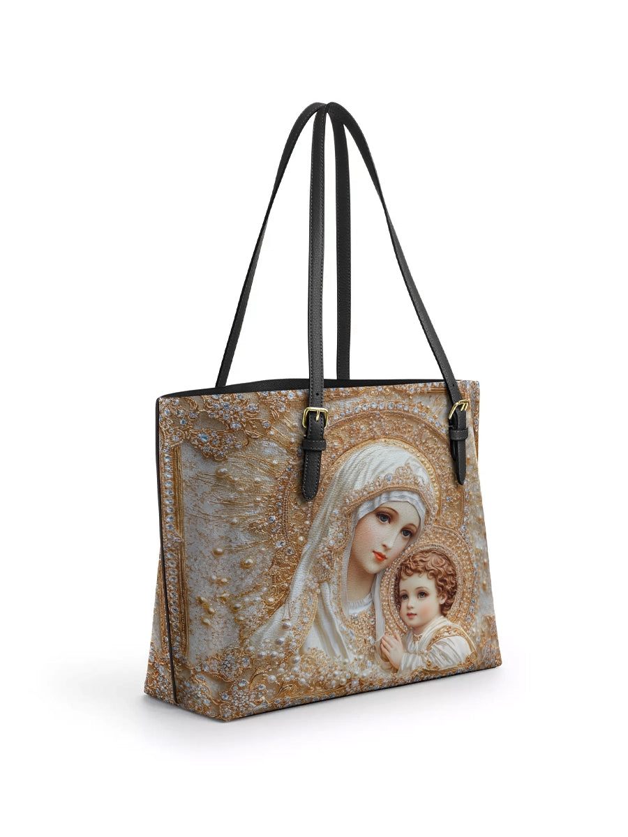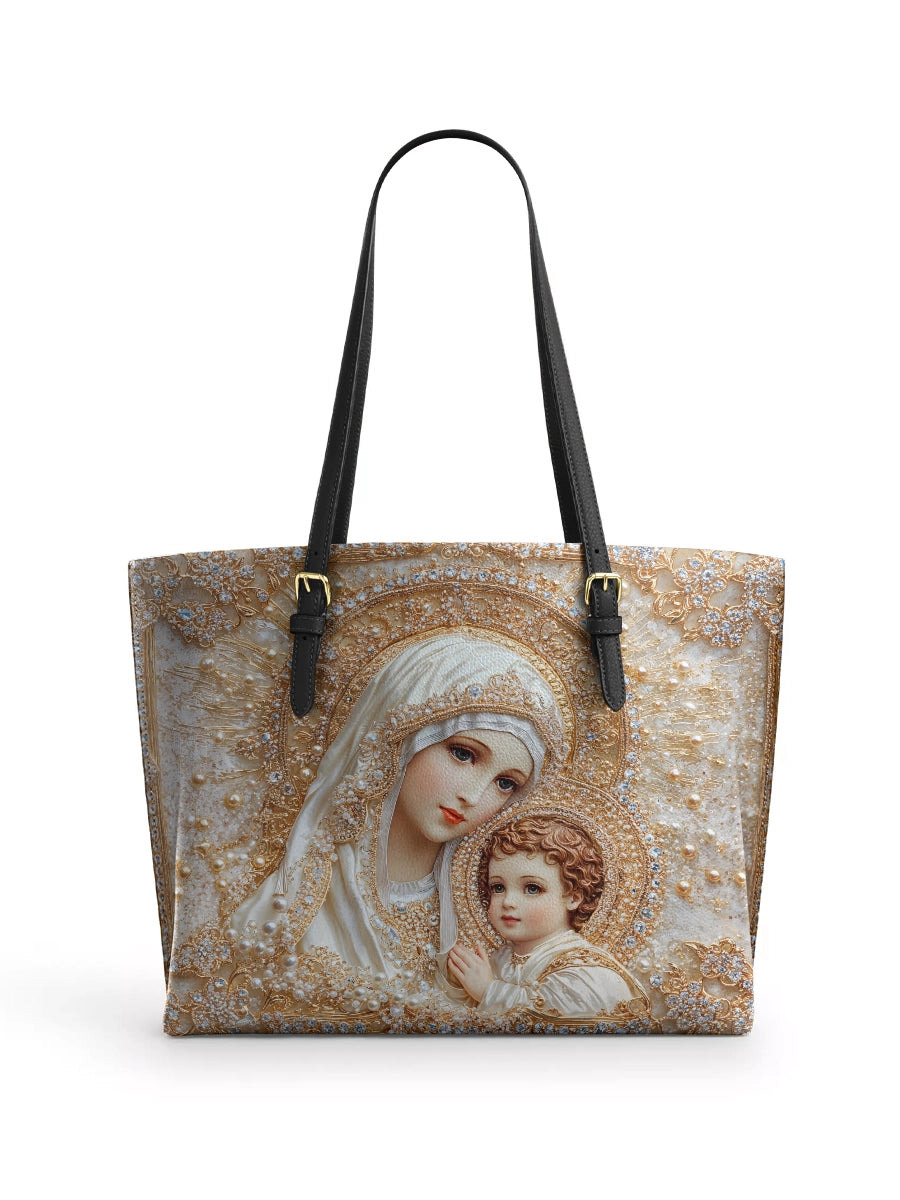 Catholight The Queen of Heaven Leather Tote Bag