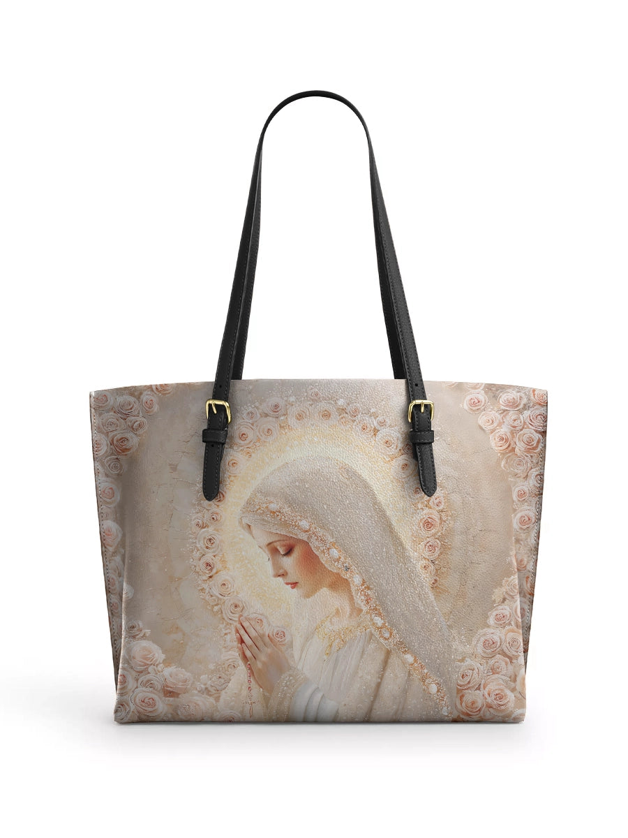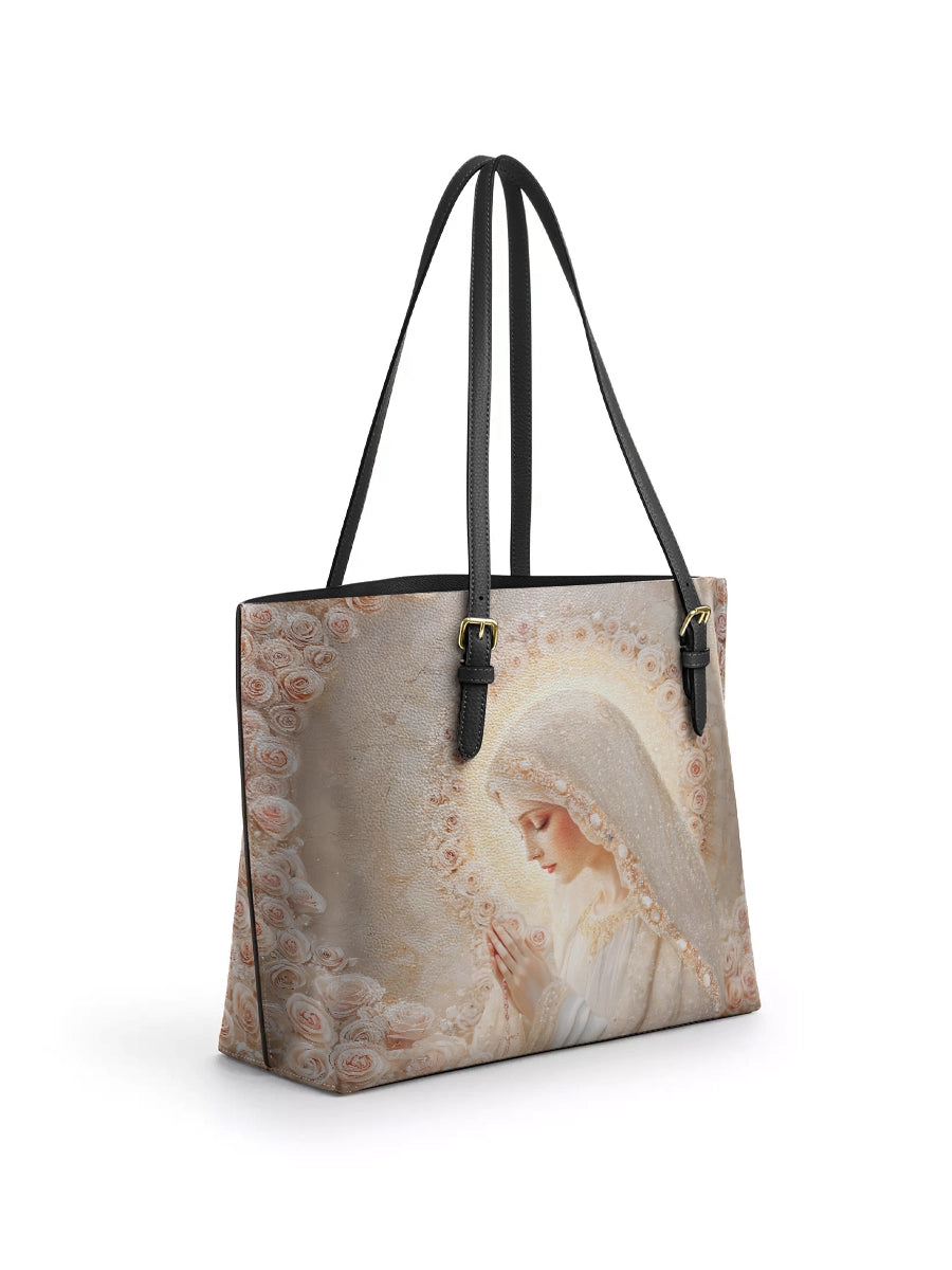 Catholight Rose Halo Devotion Leather Tote Bag