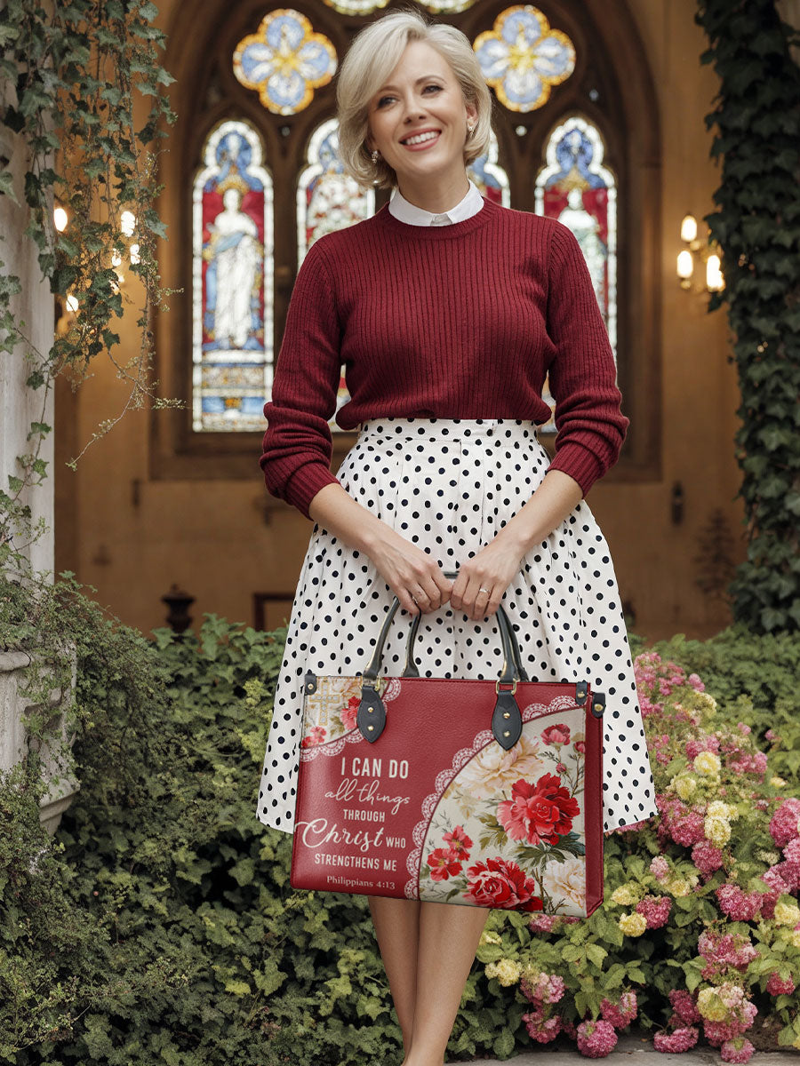 The structured handbag offers elegance and ample space for your daily journey, while the matching wallet keeps your essentials secure and organized. Together, they serve as both practical companions and daily affirmations of the strength found in Christ.