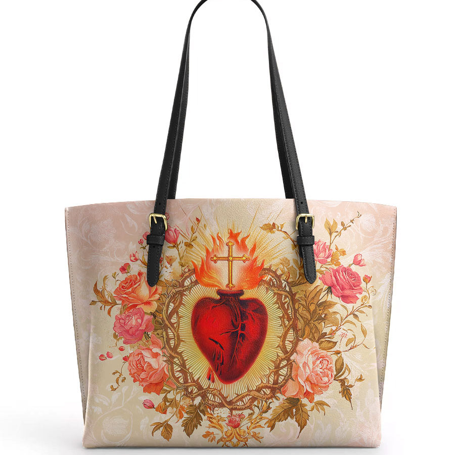 Catholight Sacred Heart of Grace Leather Tote Bag