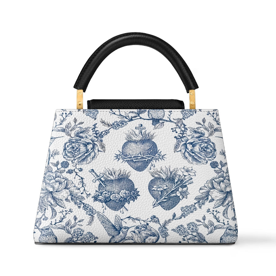 Catholight Sacred Elegance Blue and White Devotion Leather Satchel Bag