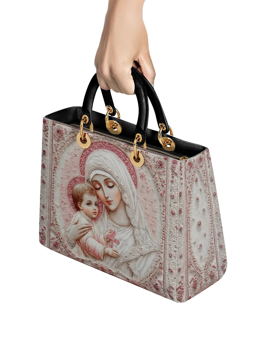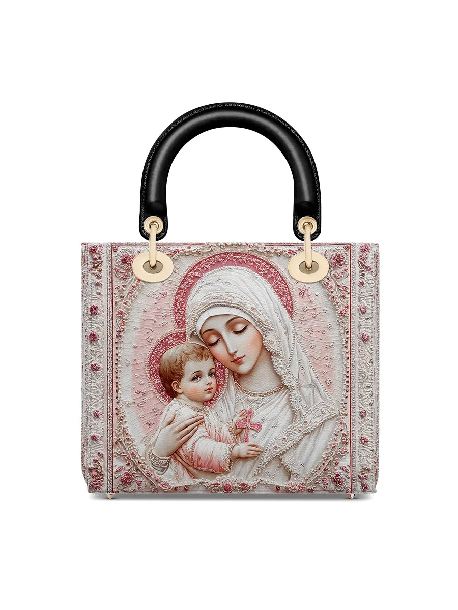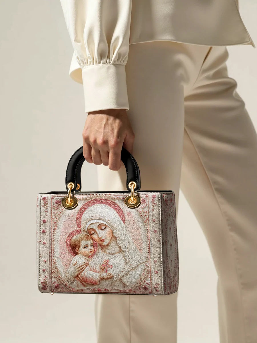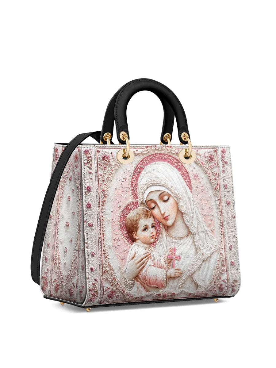 Catholight Sacred Serenity: The Madonna’s Tender Embrace Lady Leather Bag