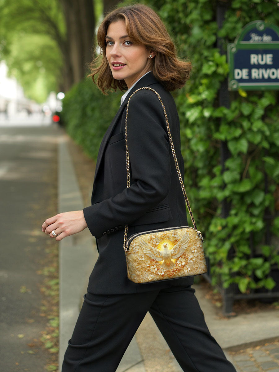 Designed with grace and intention, the Catholight Crossbody Bag is a quiet expression of faith and elegance. Its compact form, gold-accented chain strap, and symbolic artwork make it a meaningful companion for both daily life and sacred moments.