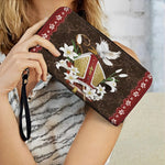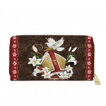 Lo sfondo marrone ricco, accentuato da bordi rossi e motivi floreali ornati, esalta l'estetica riverente e senza tempo del design. Questo portafoglio non è solo un accessorio pratico, ma anche un riflesso significativo di fede e delle virtù della leadership spirituale.