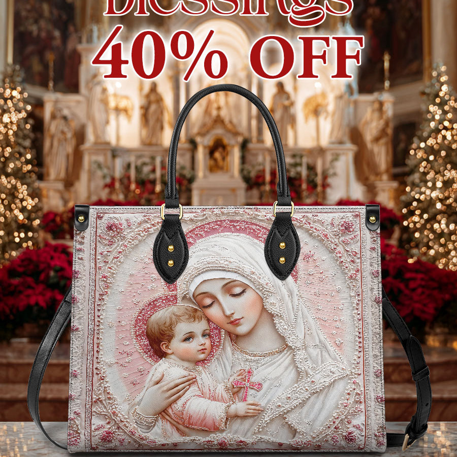 Catholight Sacred Serenity: The Madonna’s Tender Embrace Leather Bag