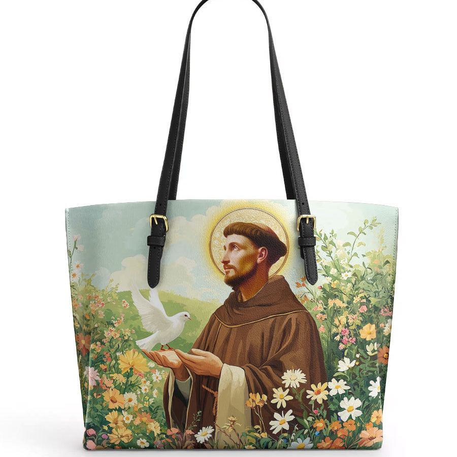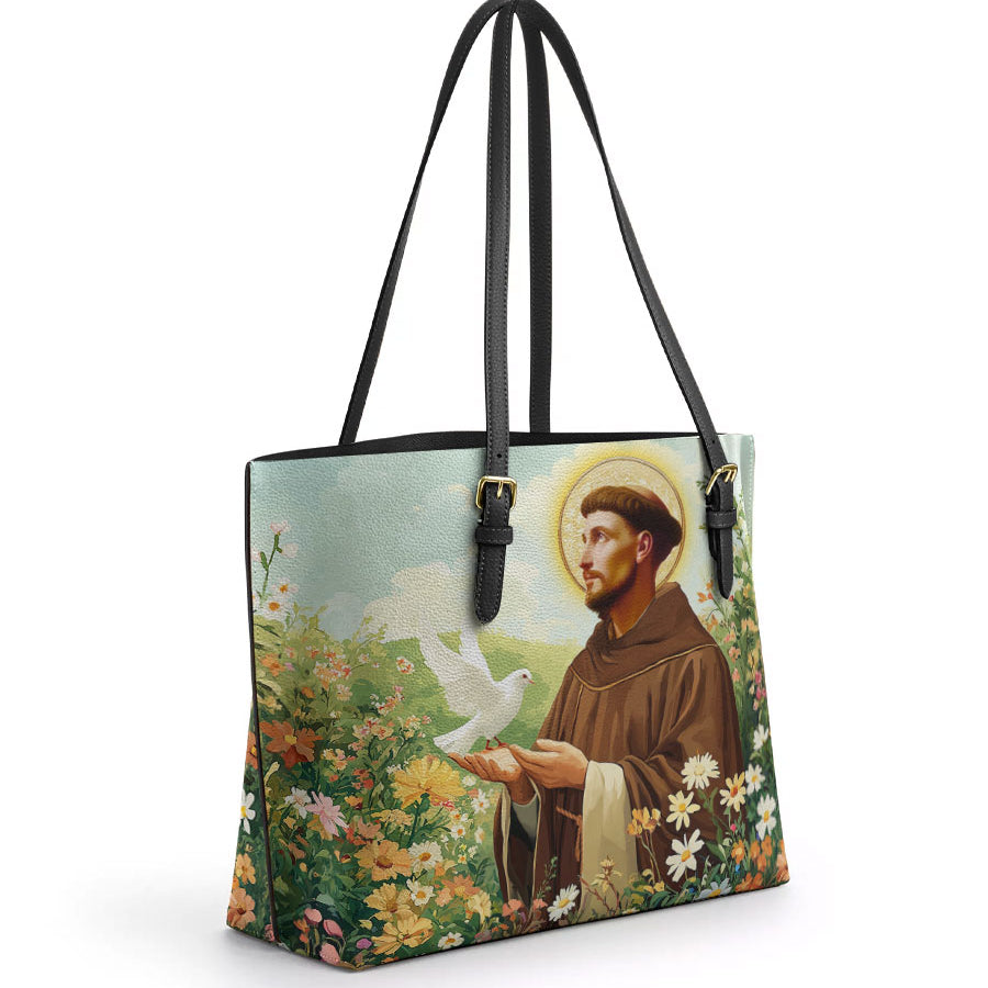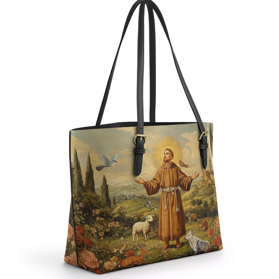 Catholight Harmony of Saint Francis Leather Tote Bag