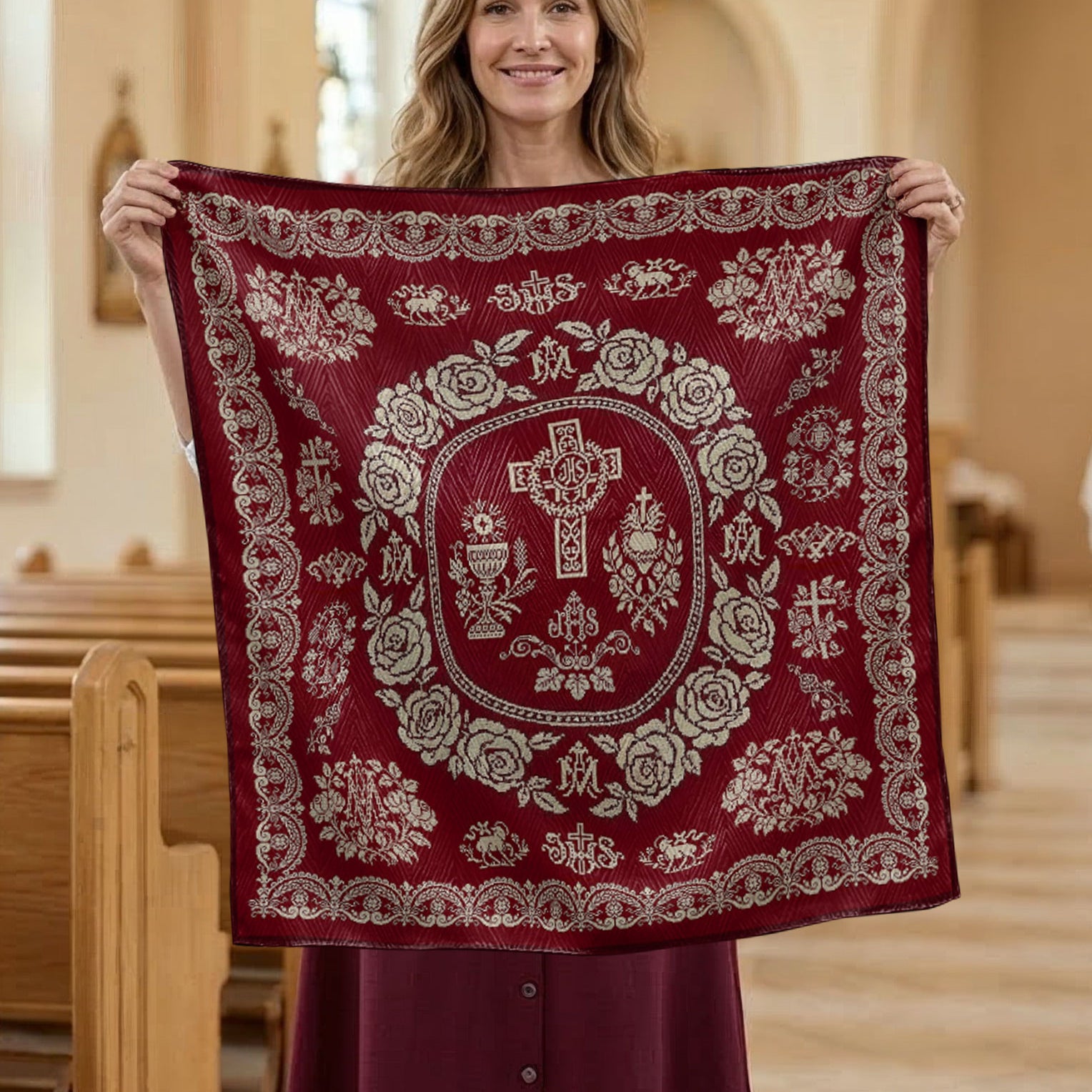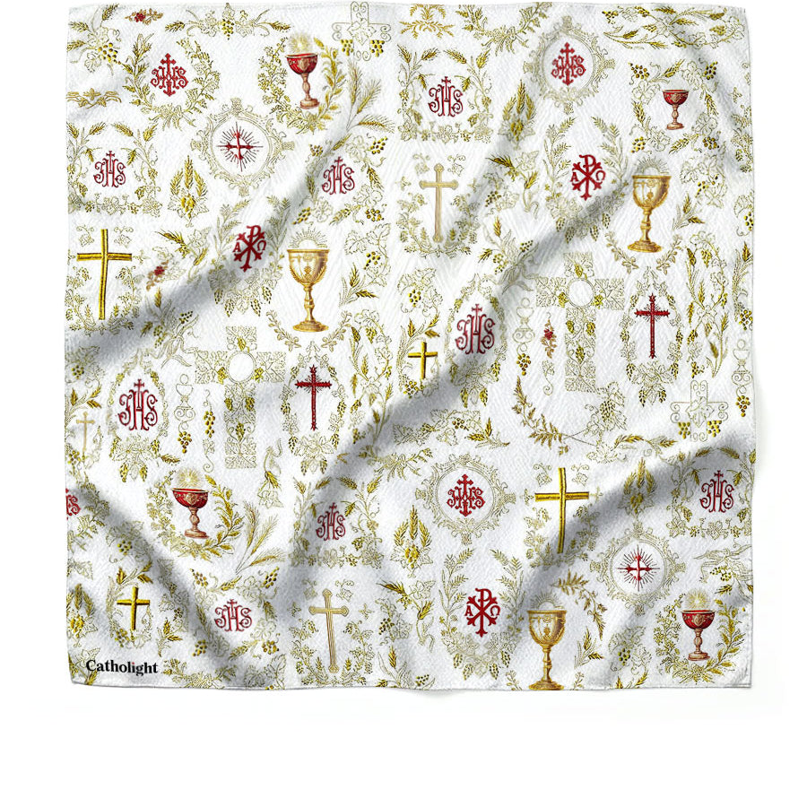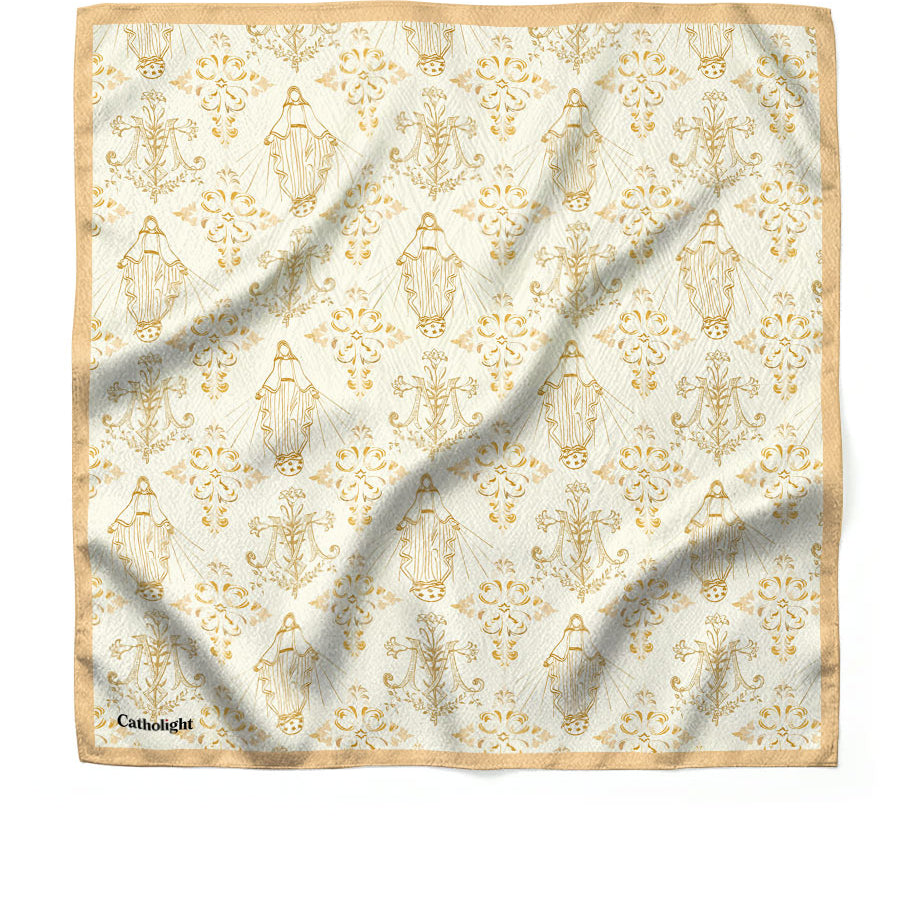 Catholight faith-inspired square scarves for prayer and everyday wear — mix & match any designs you love. Free items are automatically applied at checkout, no code needed.