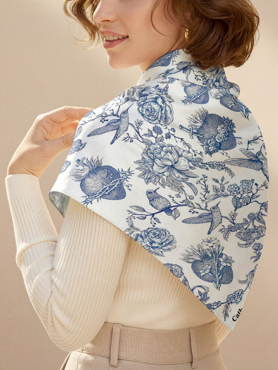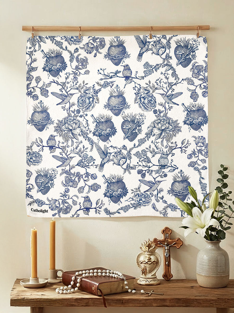 Catholight Sacred Elegance: Blue and White Devotion Square Scarf