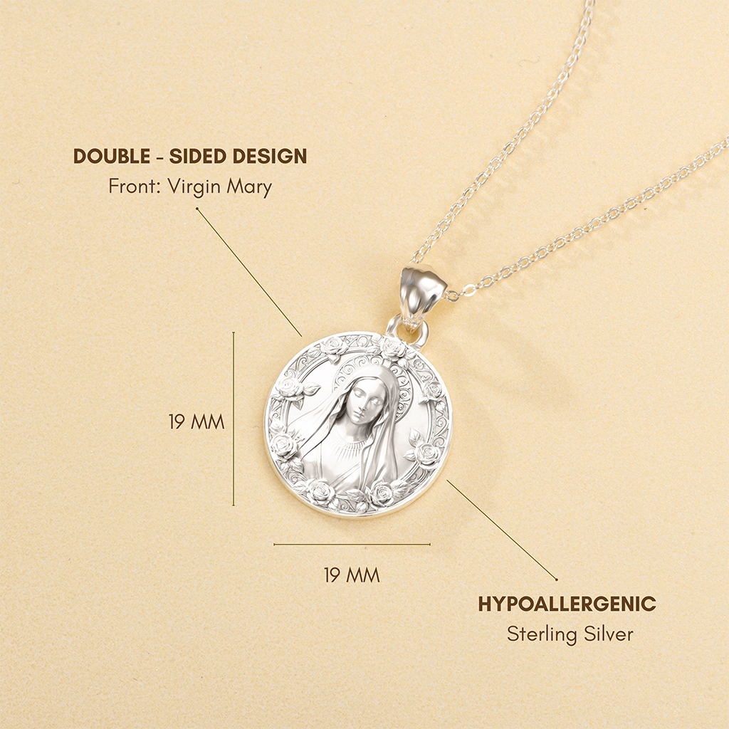Wearing this medallion is more than adornment—it’s carrying with you the quiet strength of Mary, who listens, consoles, and guides with a mother’s love. Whether in prayer or daily life, let this piece rest close to your heart as a sign of faith and grace.