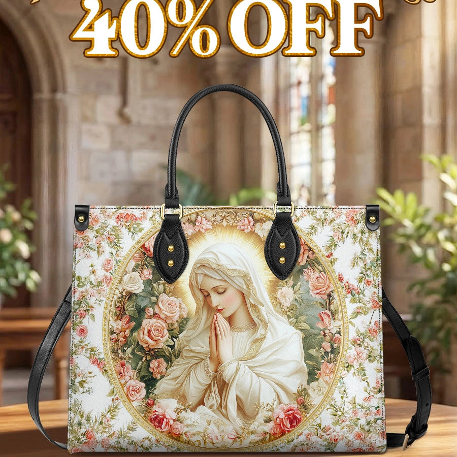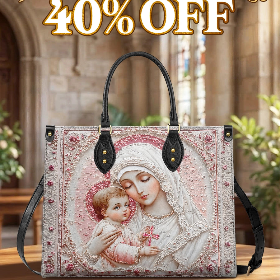 Catholight Sacred Serenity: The Madonna’s Tender Embrace Leather Bag