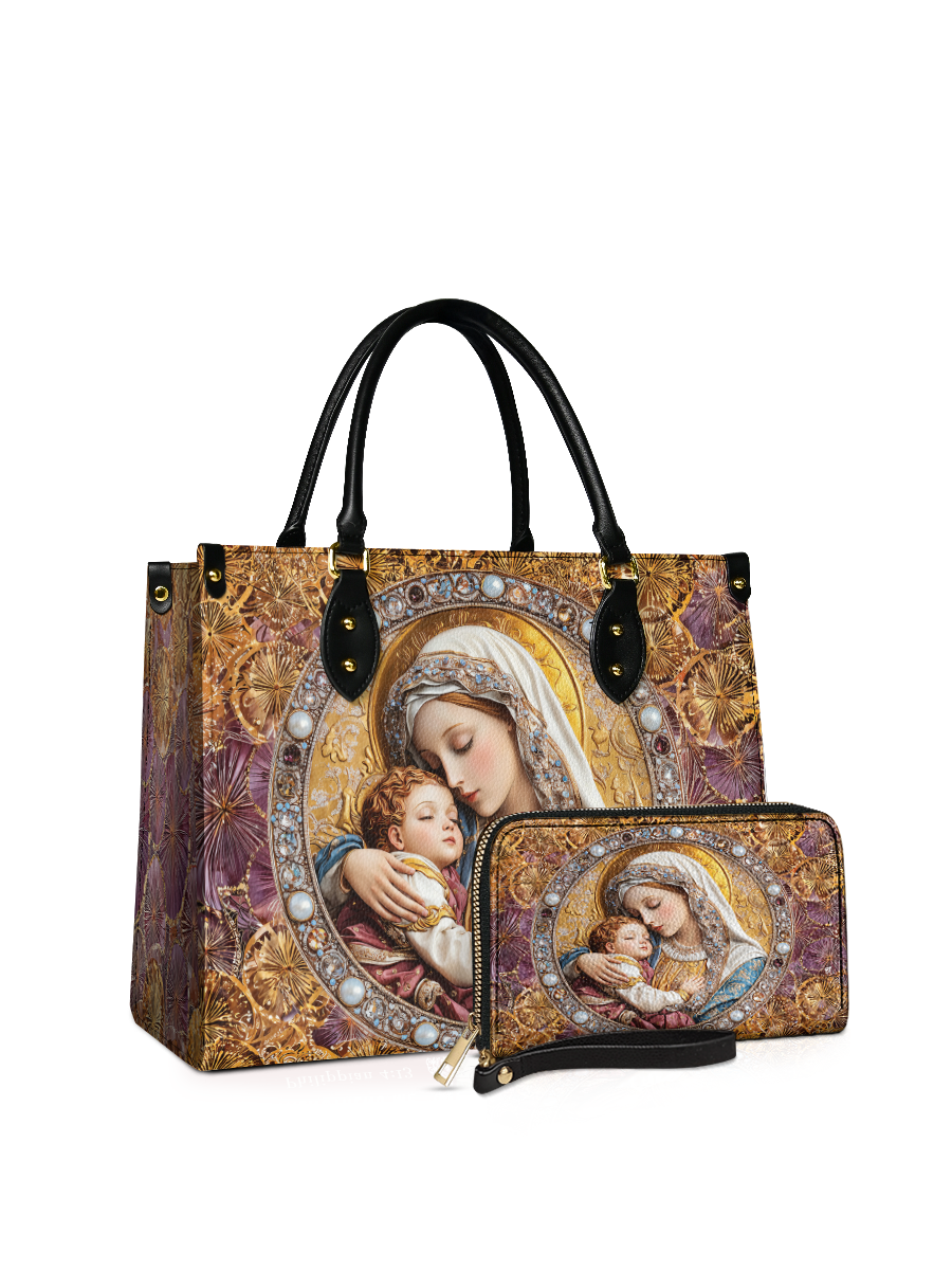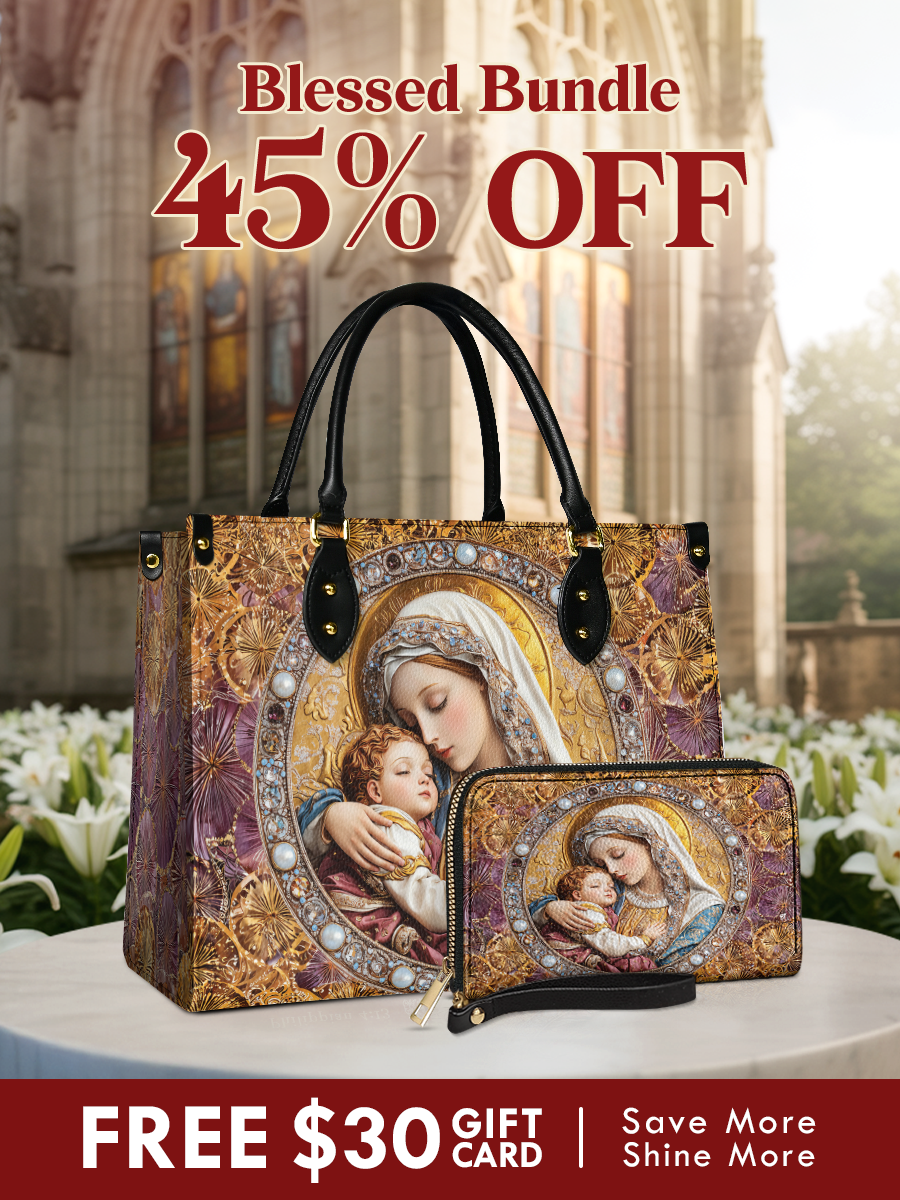 The elegant handbag provides structure and space for your essentials, while the matching wallet ensures practicality with grace. Together, they are more than accessories — they are timeless symbols of devotion, carried close each day.