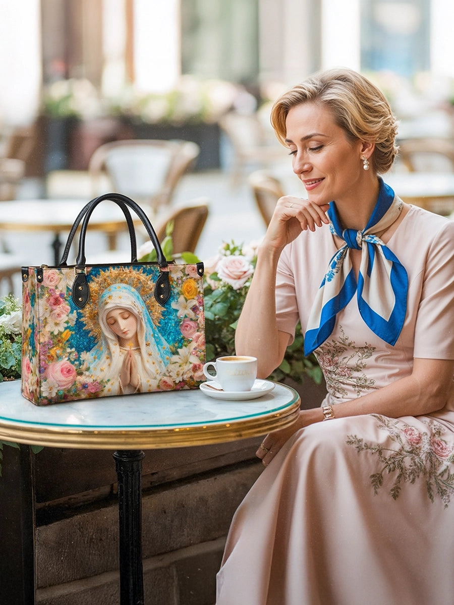 Whether chosen as a thoughtful gift or cherished as a personal keepsake, this bag is more than a beautiful accessory. It is a graceful expression of prayer, faith, and inner peace — perfect for those who wish to carry Mary’s gentle presence, hope, and devotion wherever life leads them.