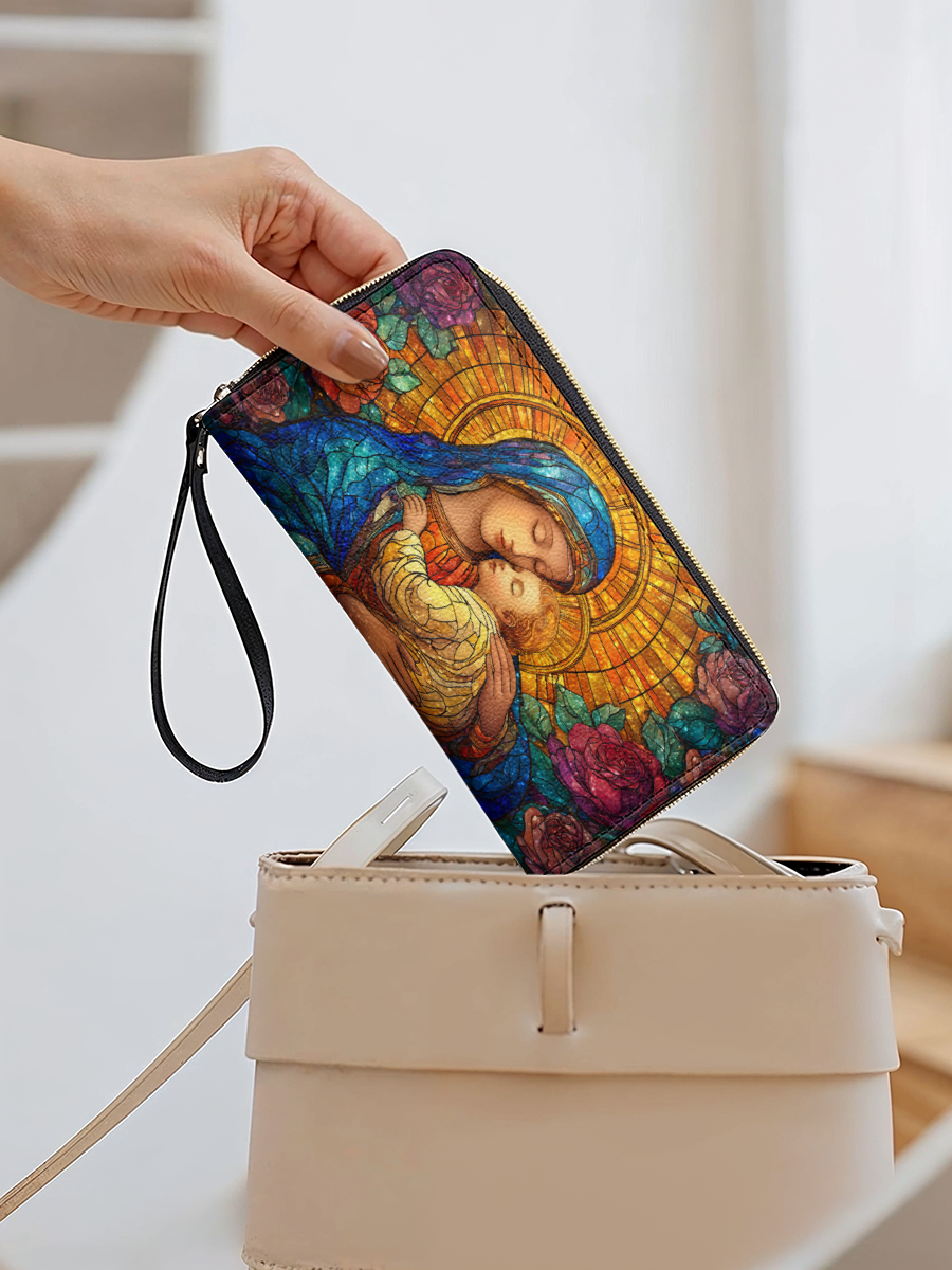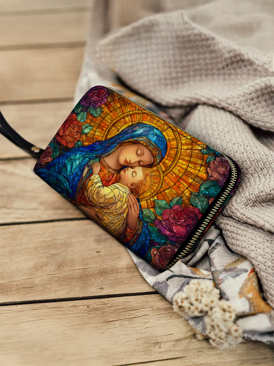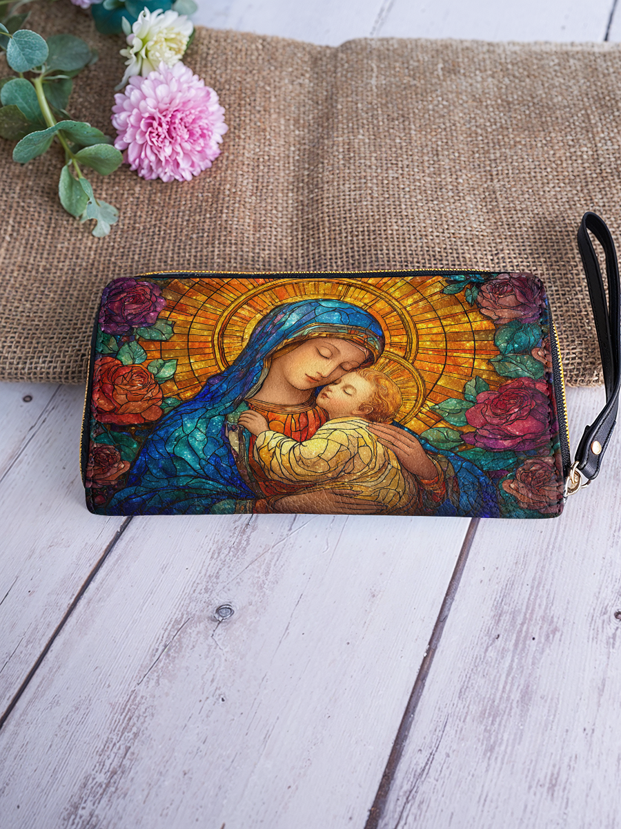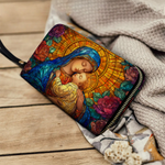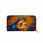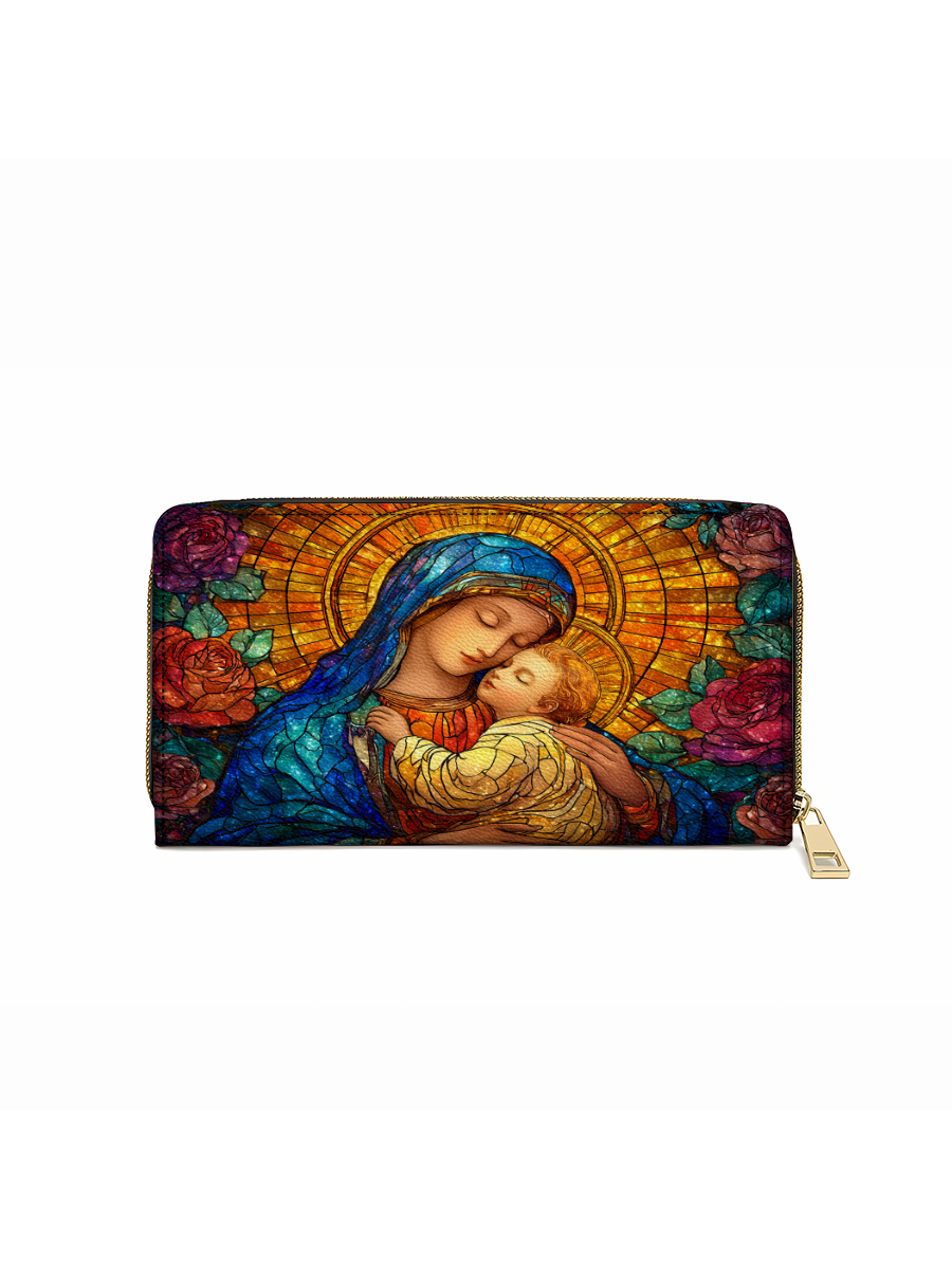 A symbol of love and grace, the Radiant Madonna Wallet captures the tender embrace of Mary and the Child Jesus in glowing stained-glass artistry. Surrounded by radiant golden light and blooming roses, this design reflects the warmth of a mother’s devotion and the beauty of divine protection.