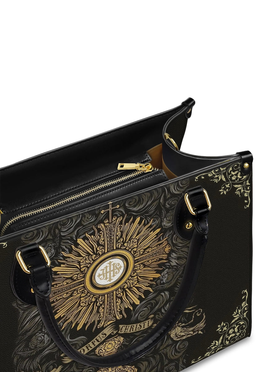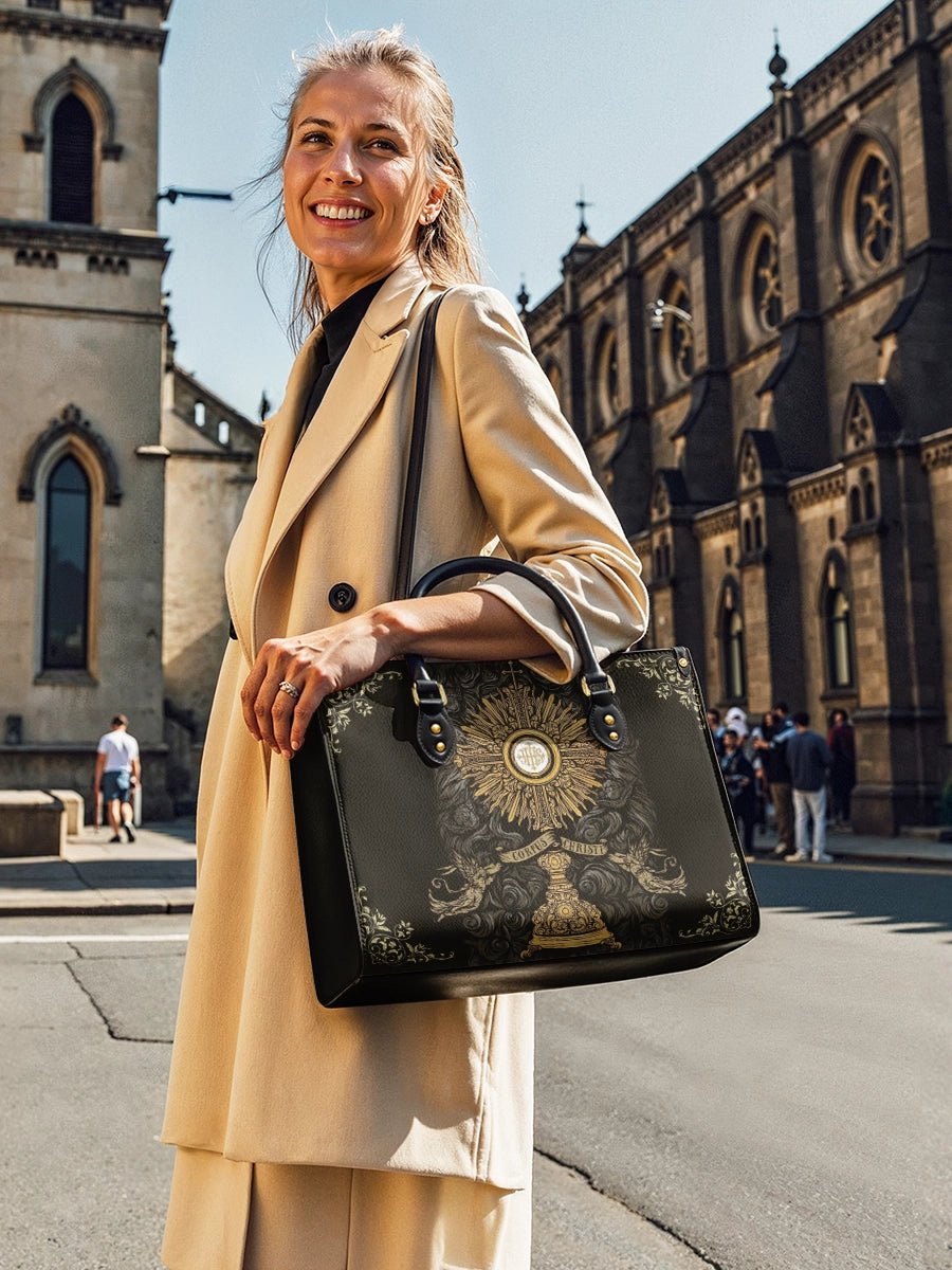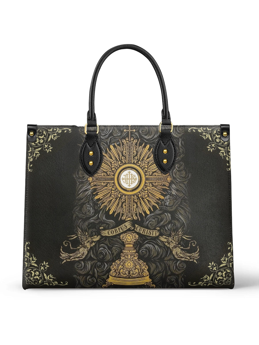 Whether as a thoughtful gift or a personal treasure, "The Corpus Christi Elegance" bag is perfect for those who value the beauty of their faith. Whether attending Mass, participating in religious events, or going about your day, this bag elegantly combines devotion and fashion in a truly timeless way.