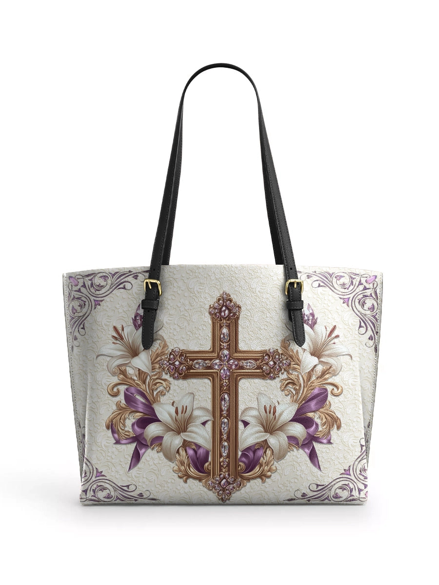 Catholight Faith & Florals Leather Tote Bag