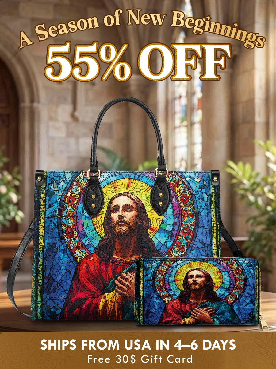 The elegant handbag offers structure and ample space for daily essentials, while the matching wallet adds beauty and organization — a timeless pair for women who walk with Christ in every step of life.