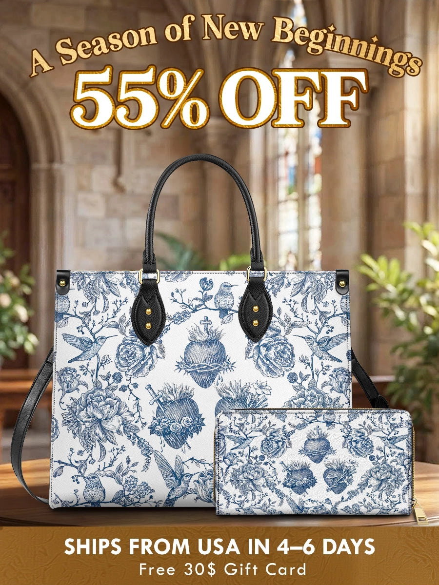 The structured handbag offers graceful functionality, while the matching wallet keeps your essentials organized with charm and purpose — a pairing for women whose faith flows through the details.