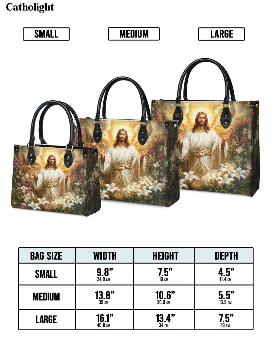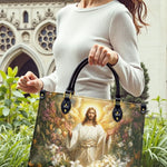 MEDIUM (13.8”× 10.6”× 5.5”): Graceful and versatile. Holds your Missal, devotional journal, water bottle, hand cream, wallet, phone, and even a folded shawl for chilly chapels. Perfect for parish meetings, adoration, or daily errands with purpose.