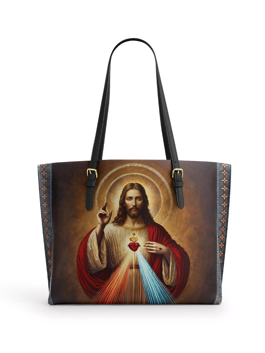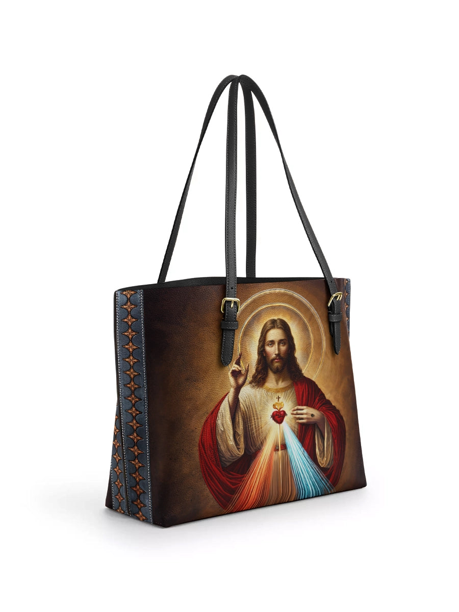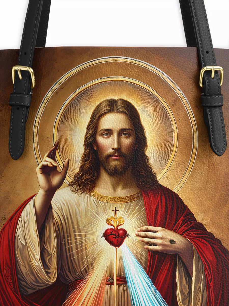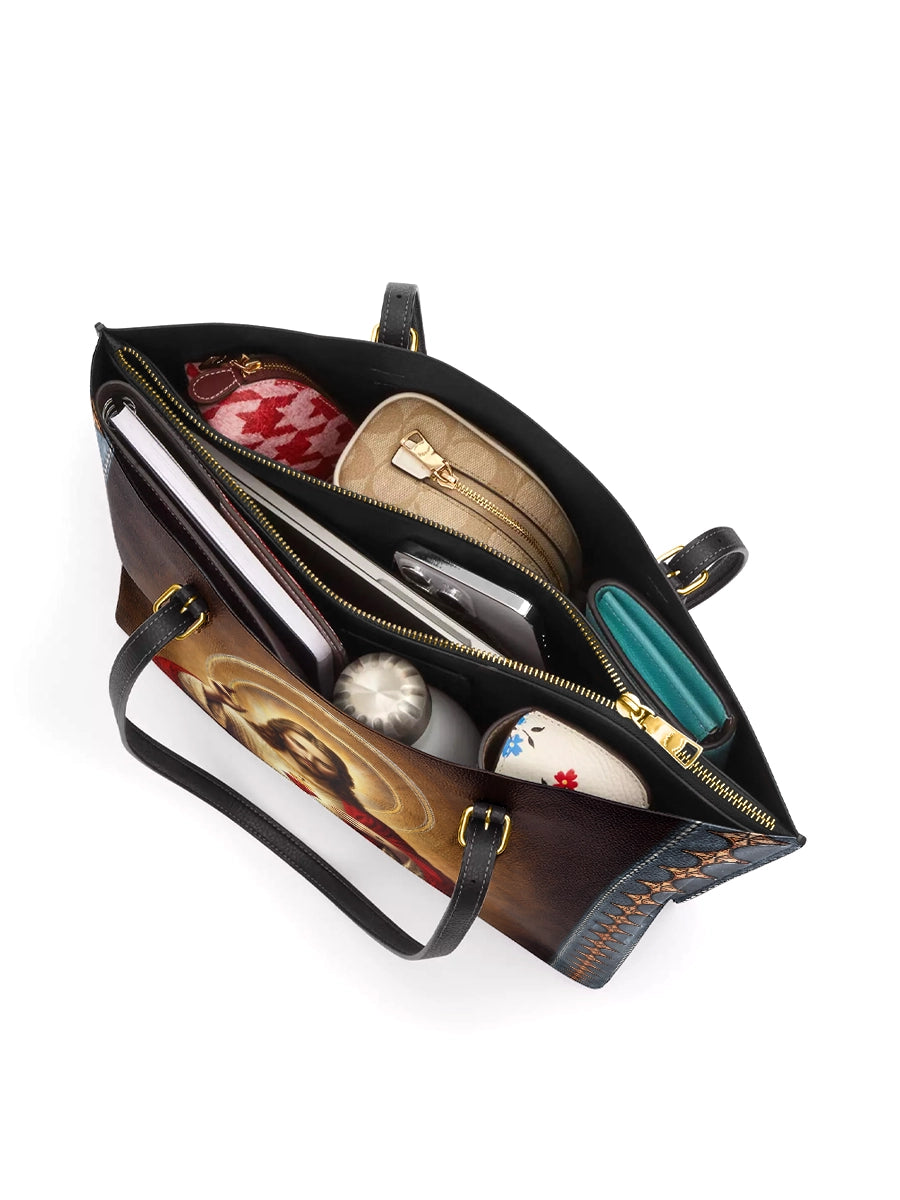 Catholight A Testament of Grace and Compassion Leather Tote Bag