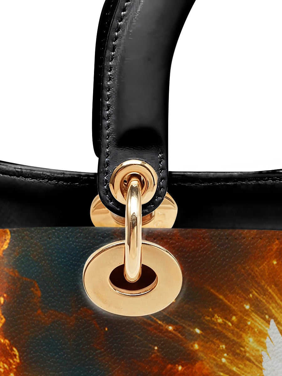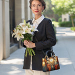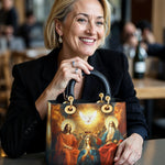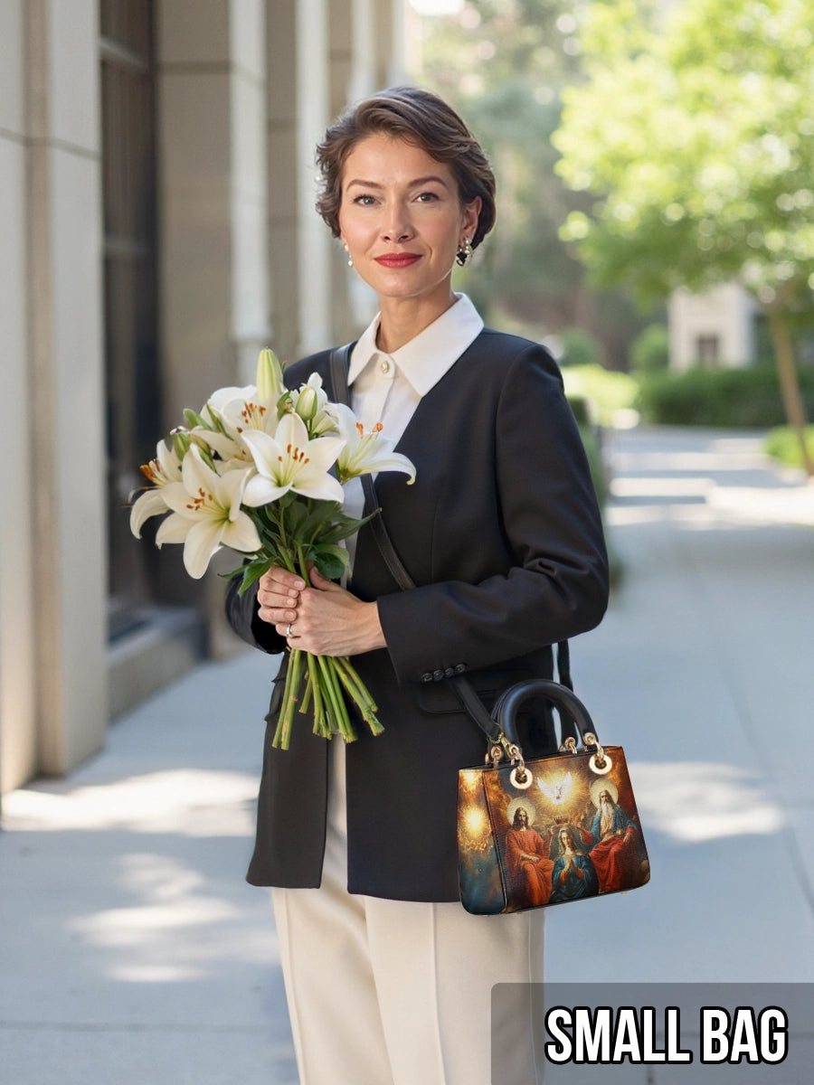 This bag radiates serenity, devotion, and celestial glory, inviting reflection on faith and the divine mysteries. Perfect for those who cherish religious art, it captures the timeless beauty of Mary's role in salvation history, inspiring awe and spiritual connection.