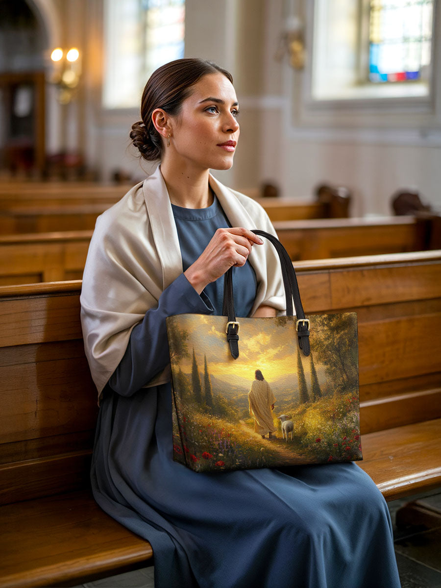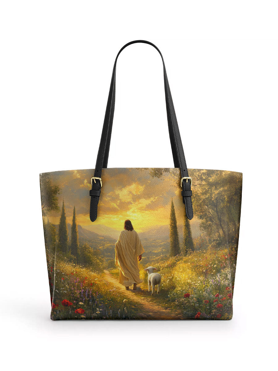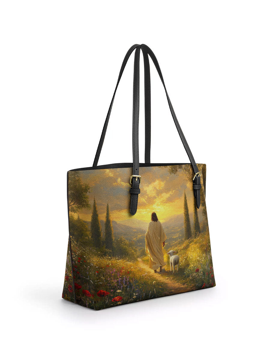 Catholight Divine Light and Love Leather Tote Bag
