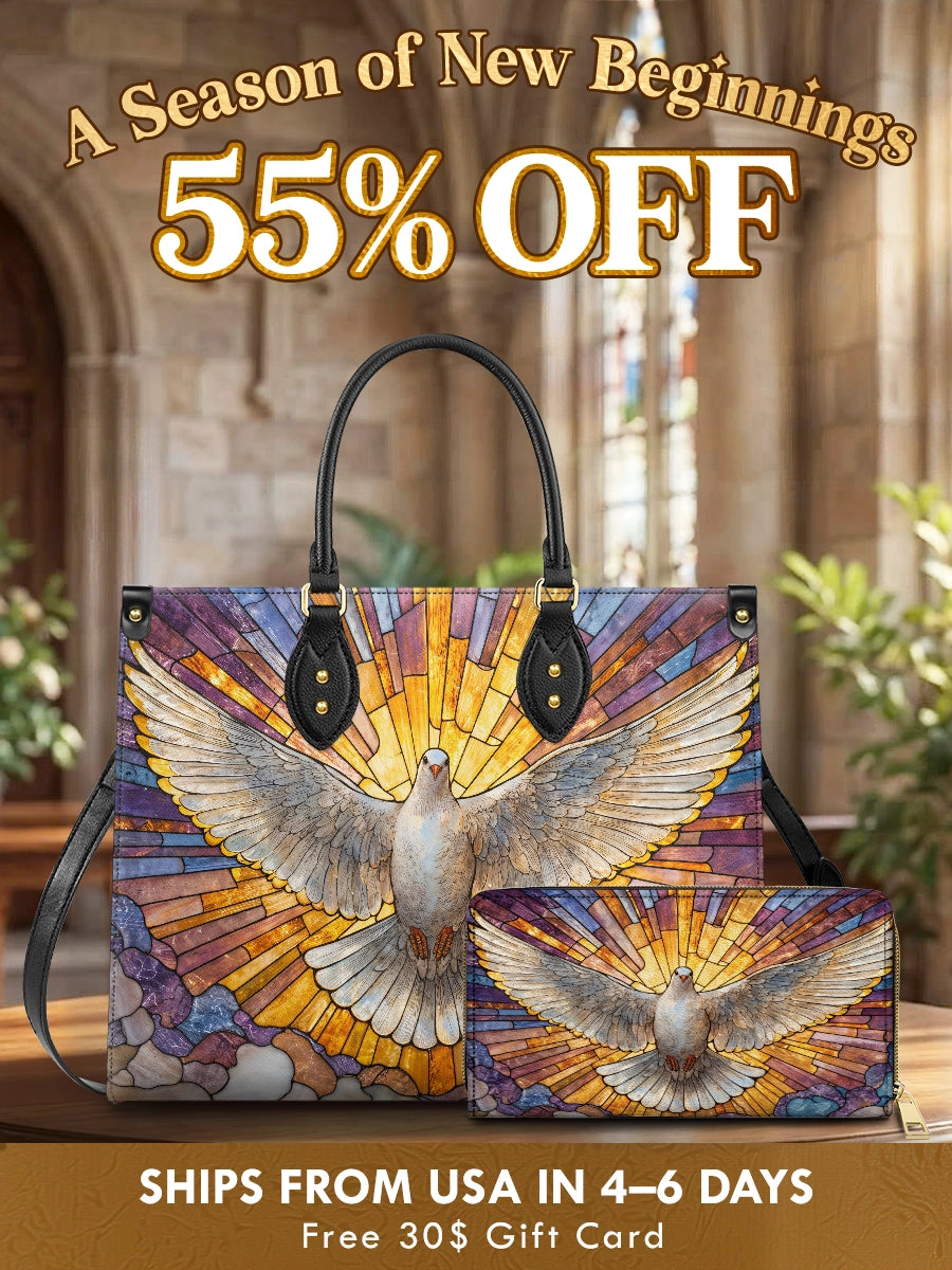 The elegant handbag offers structure and ample space for everyday needs, while the matching wallet adds beauty and organization — a graceful pair for women who walk in the light of the Spirit.
