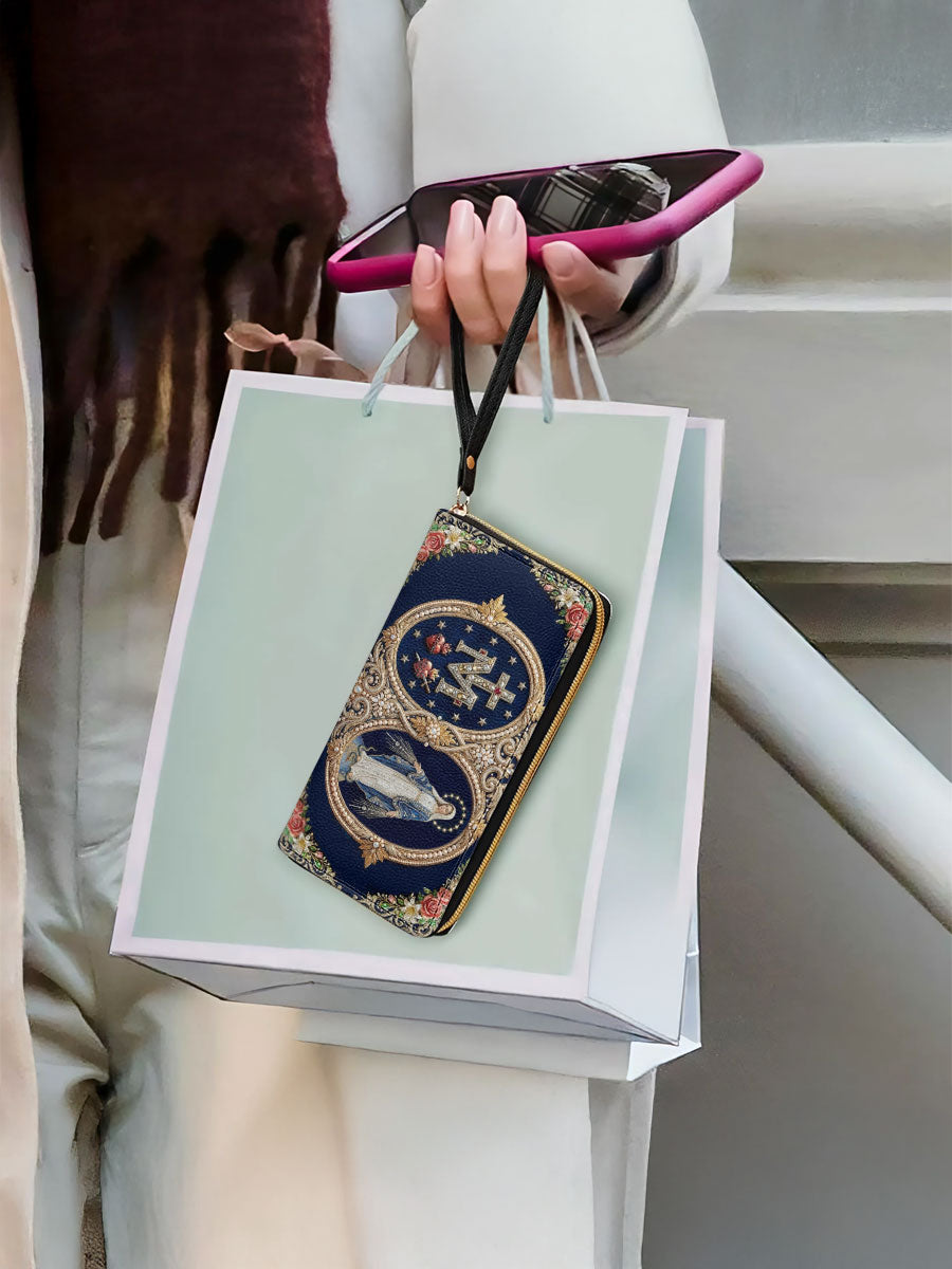 Inspired by the Miraculous Medal and the loving promise of Our Blessed Mother, this leather wallet is a quiet expression of faith you can carry every day.