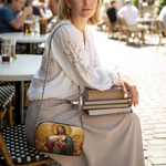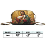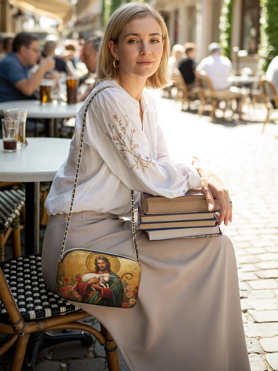 Designed with grace and intention, the Catholight Crossbody Bag is a quiet expression of faith and elegance. Its compact form, gold-accented chain strap, and symbolic artwork make it a meaningful companion for both daily life and sacred moments.