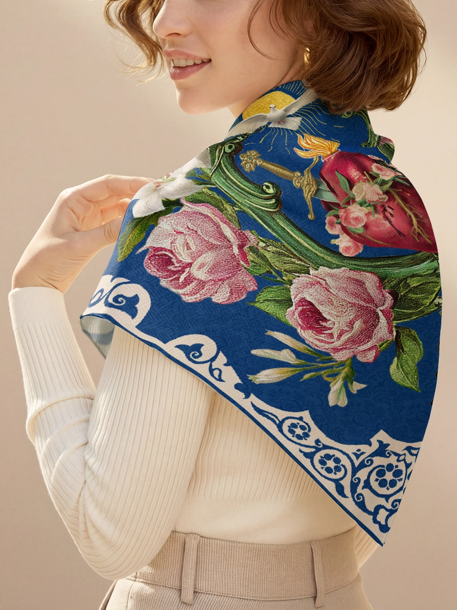 Crafted from Woodgrain Silk, this 70x70cm square scarf glows with a soft, luminous texture — elegant yet quietly powerful. Lightweight and smooth, it drapes effortlessly for prayer, Sunday Mass, or as a meaningful daily accessory.