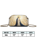 Designed with grace and intention, the Catholight Crossbody Bag is a quiet expression of faith and elegance. Its compact form, gold-accented chain strap, and symbolic artwork make it a meaningful companion for both daily life and sacred moments.