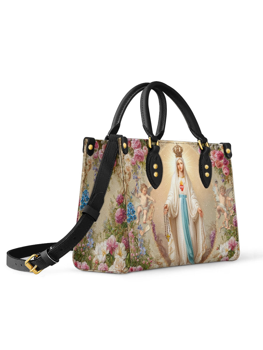 Whether chosen as a meaningful gift or a personal keepsake, this bag is both a refined accessory and a heartfelt expression of devotion. It is perfect for those who cherish Mary’s gentle presence and wish to carry a symbol of faith, love, and heavenly beauty with them each day.