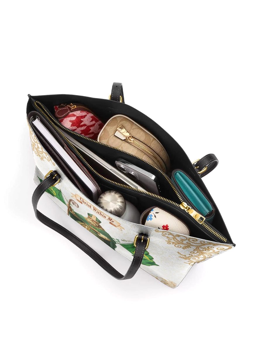 Carry your faith beautifully with the Catholight Tote Bag. Premium craftsmanship meets sacred art, creating a spacious, elegant bag that accompanies you through everyday moments and spiritual journeys alike