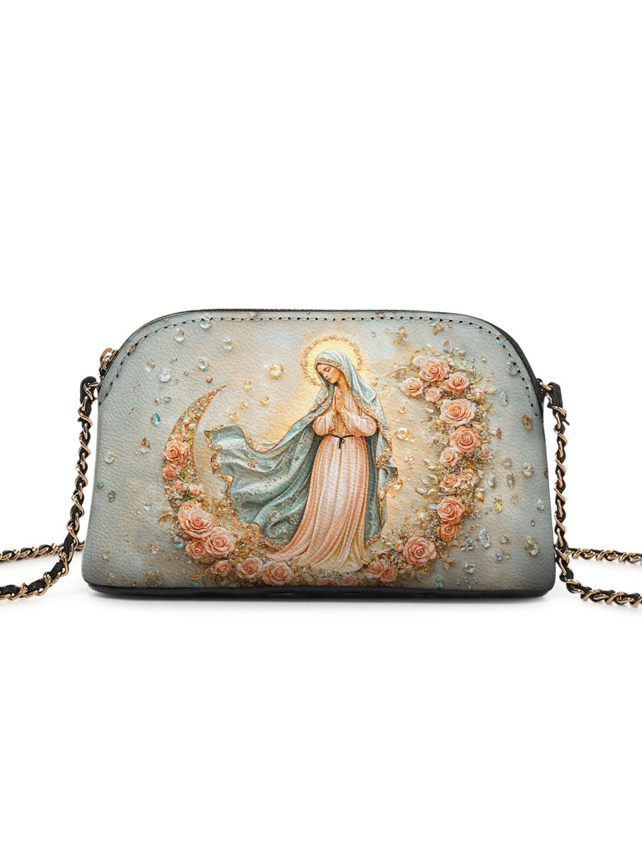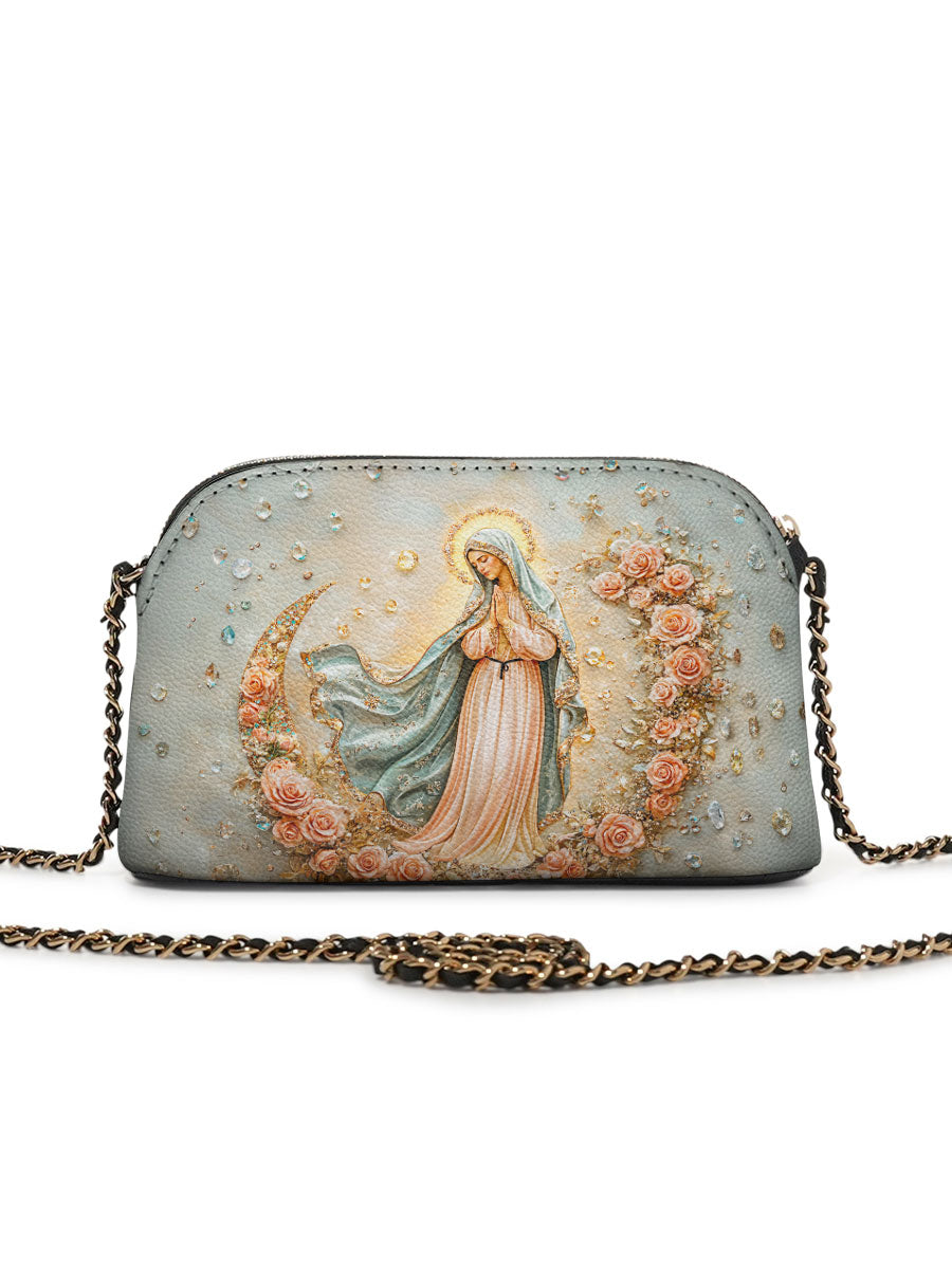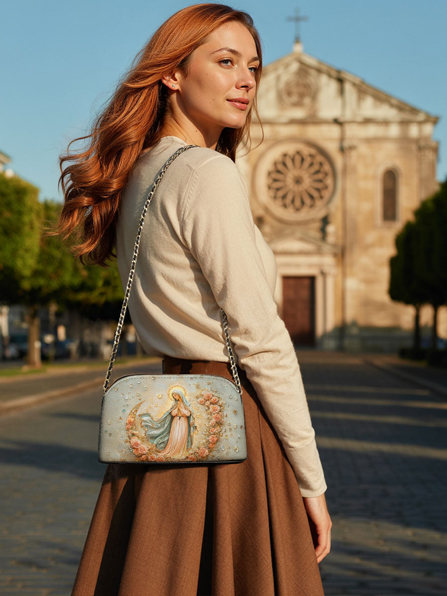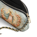 Designed with grace and intention, the Catholight Crossbody Bag is a quiet expression of faith and elegance. Its compact form, gold-accented chain strap, and symbolic artwork make it a meaningful companion for both daily life and sacred moments.