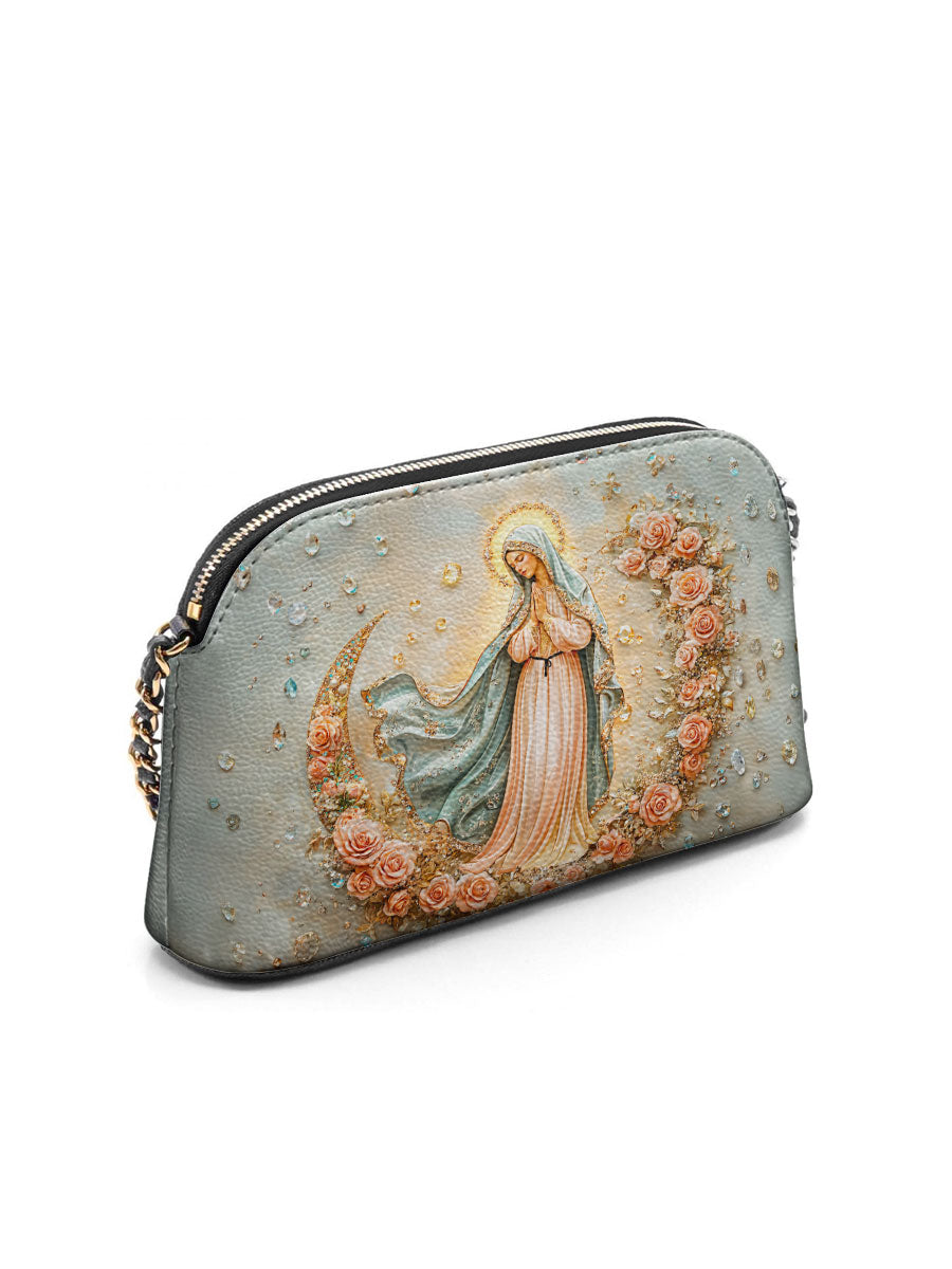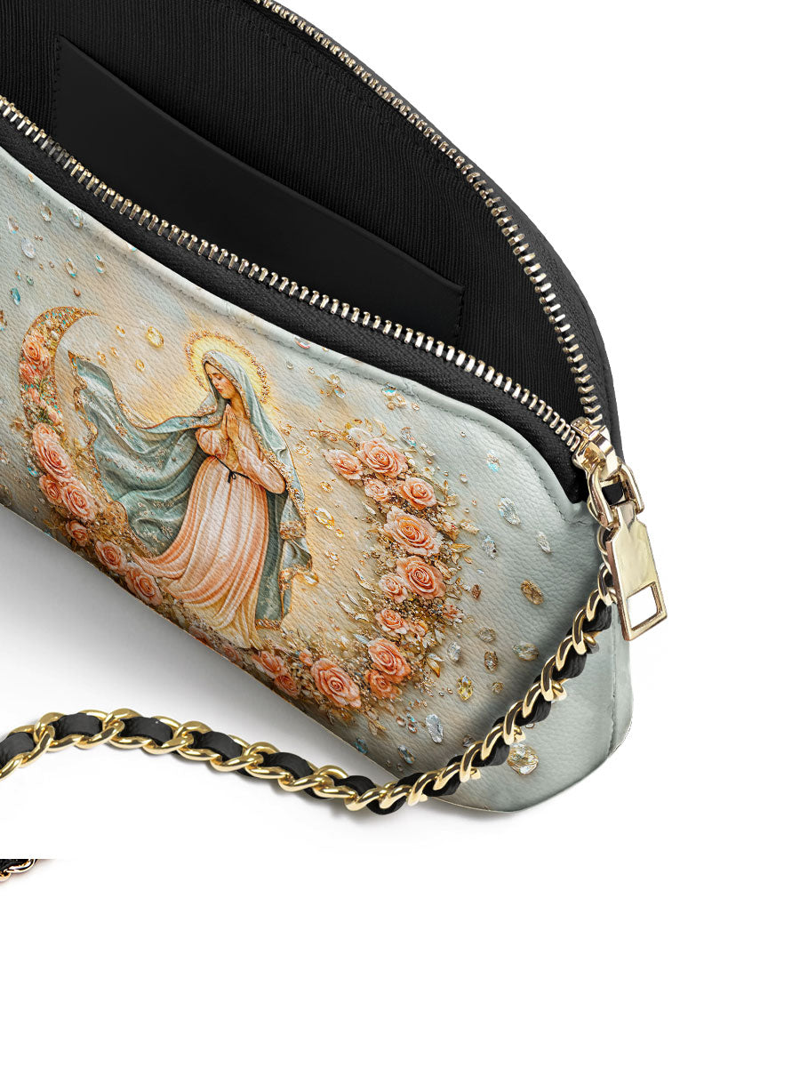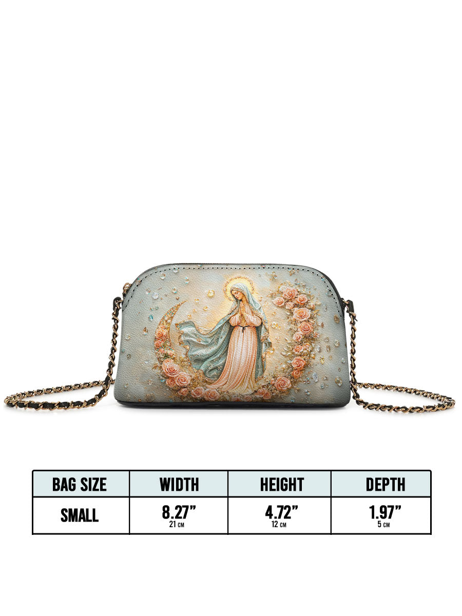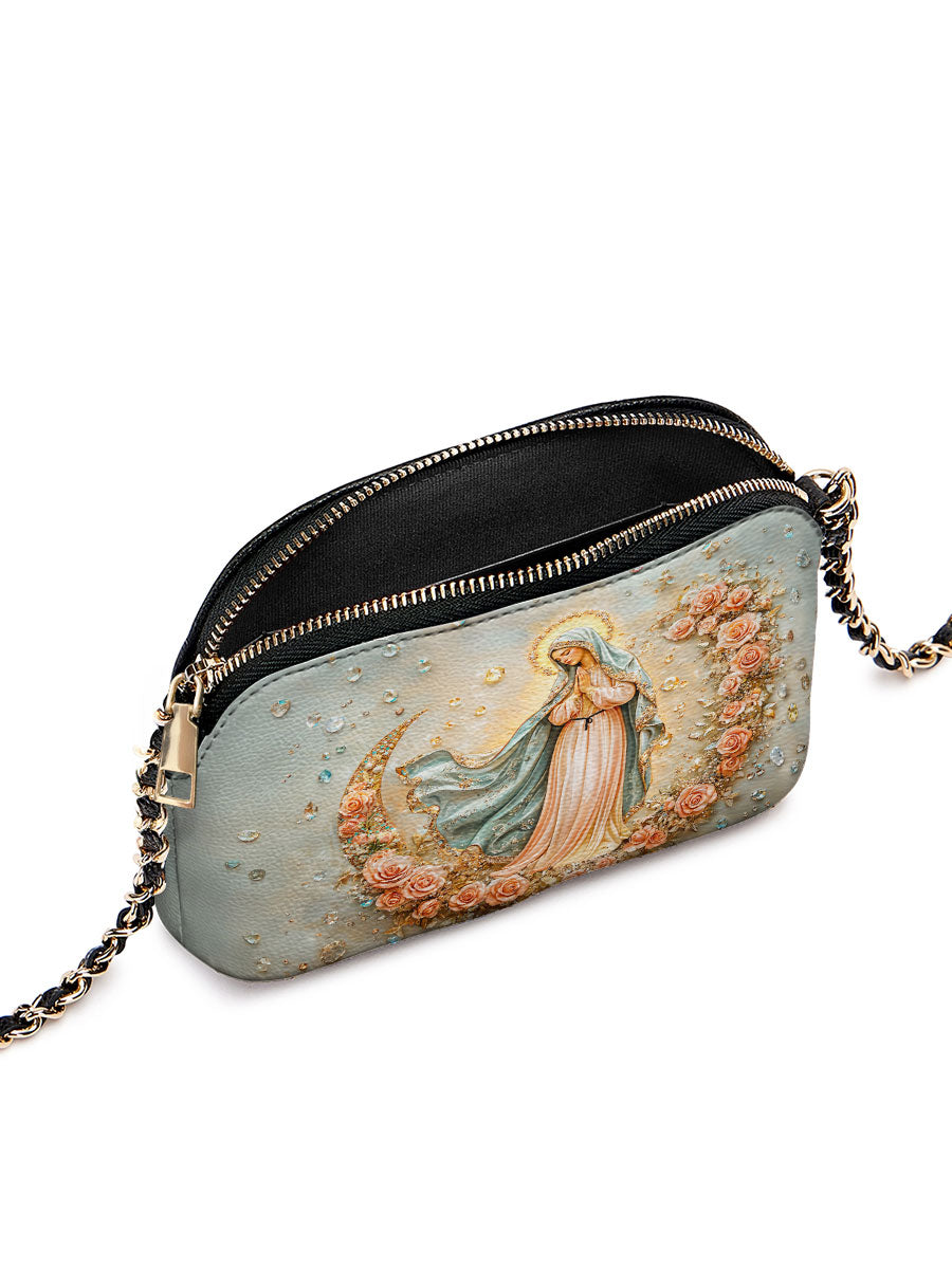 Designed with grace and intention, the Catholight Crossbody Bag is a quiet expression of faith and elegance. Its compact form, gold-accented chain strap, and symbolic artwork make it a meaningful companion for both daily life and sacred moments.
