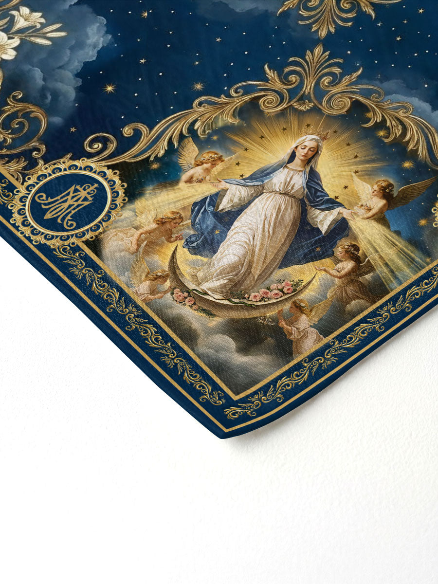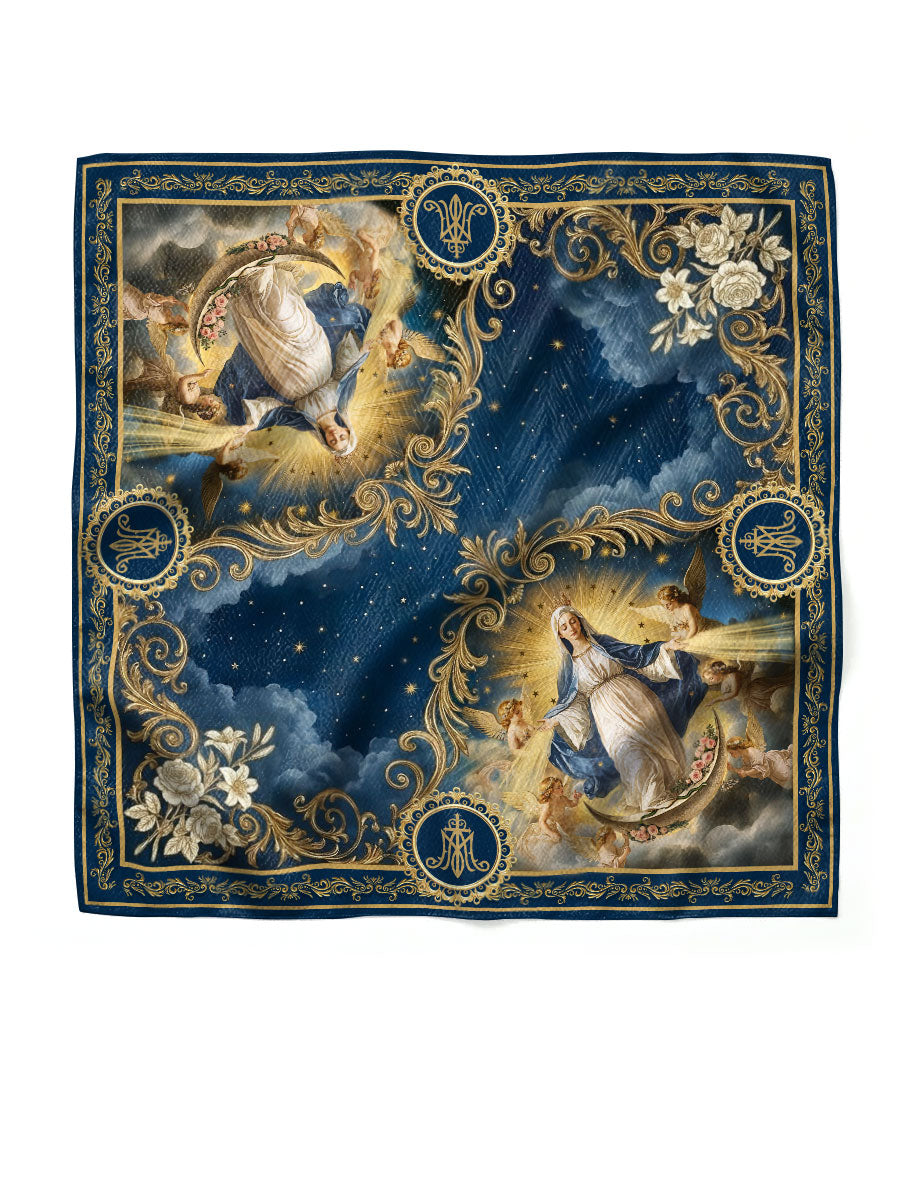 Crafted from Woodgrain Silk, this 70x70cm square scarf glows with a soft, luminous texture — elegant yet quietly powerful. Lightweight and smooth, it drapes effortlessly for prayer, Sunday Mass, or as a meaningful daily accessory.